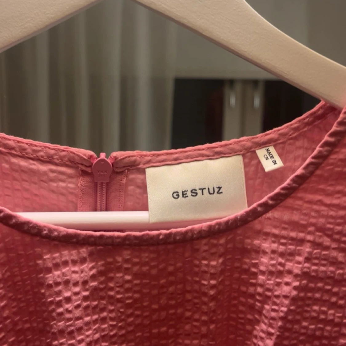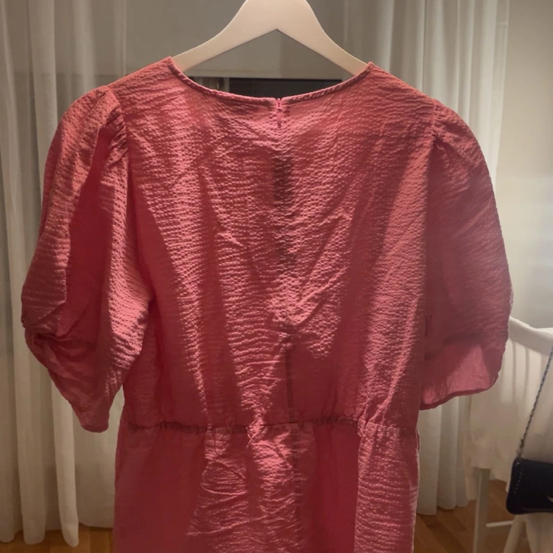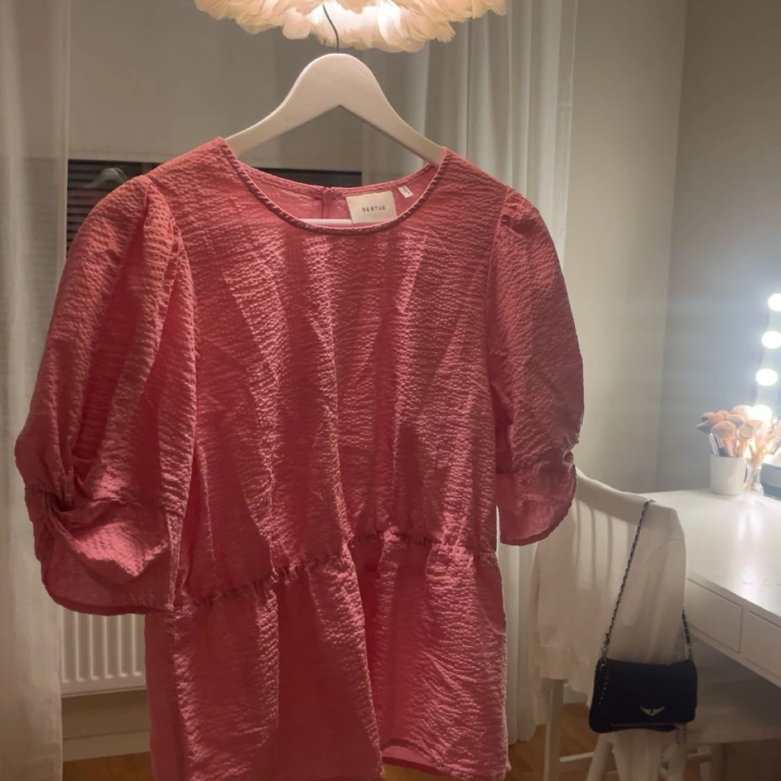Supersöt rosa blus från Gestuz i storlek 38 med puffiga trekvartsärmar och knytdetalj vid ärmslutet. Blusen har en strukturerad, lätt glansig yta och dragkedja bak i nacken. Perfekt för dig som vill ha en feminin och trendig look. Hör gärna av er vid frågor eller funderingar! 💖(Dyrt märke därav priset.)