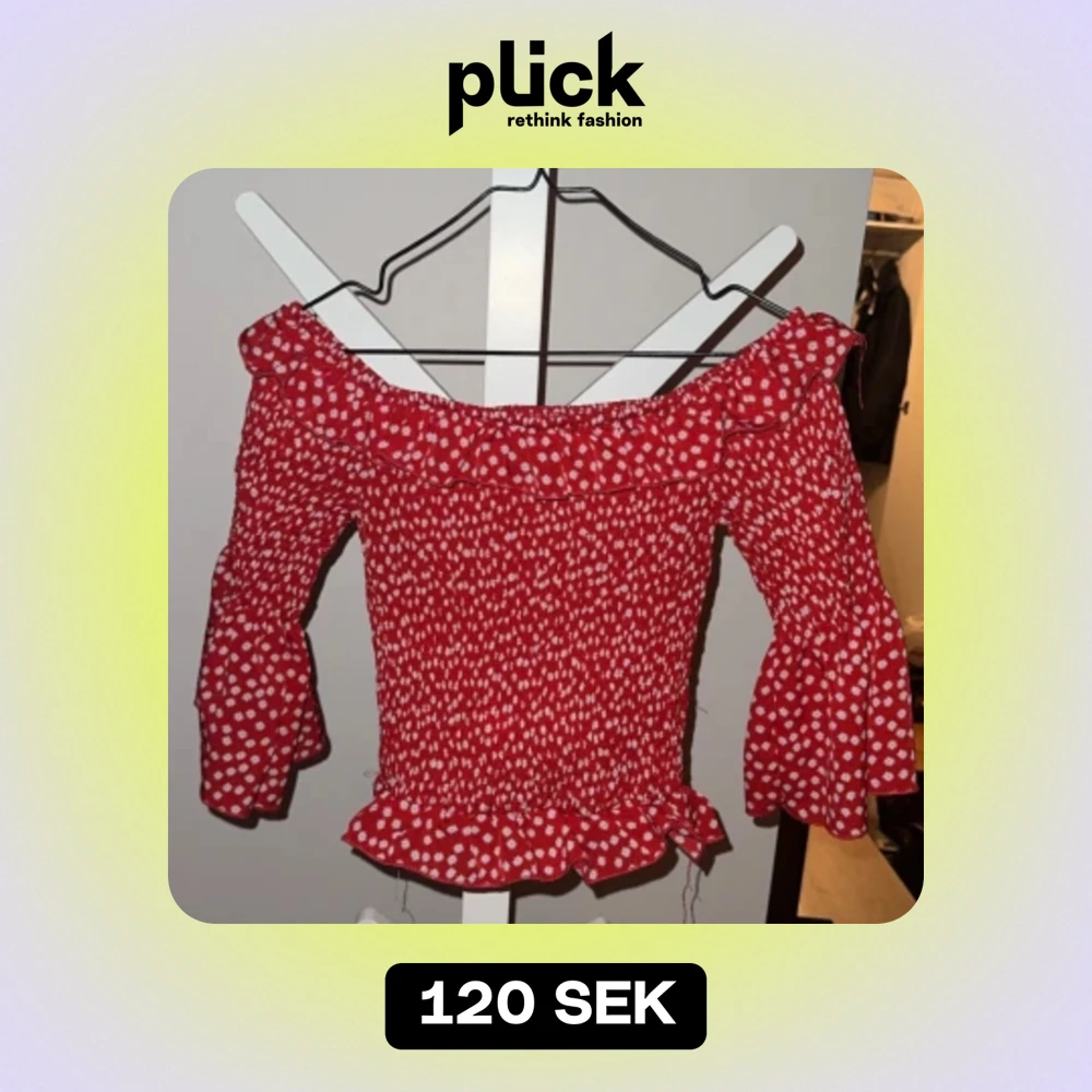 Fin röd blus. Använd ett fåtal ggr men ligger nu mest som en dekoration i garderoben. Storlek 42 men liten i storleken. Jag har normalt 38-40 på blus.