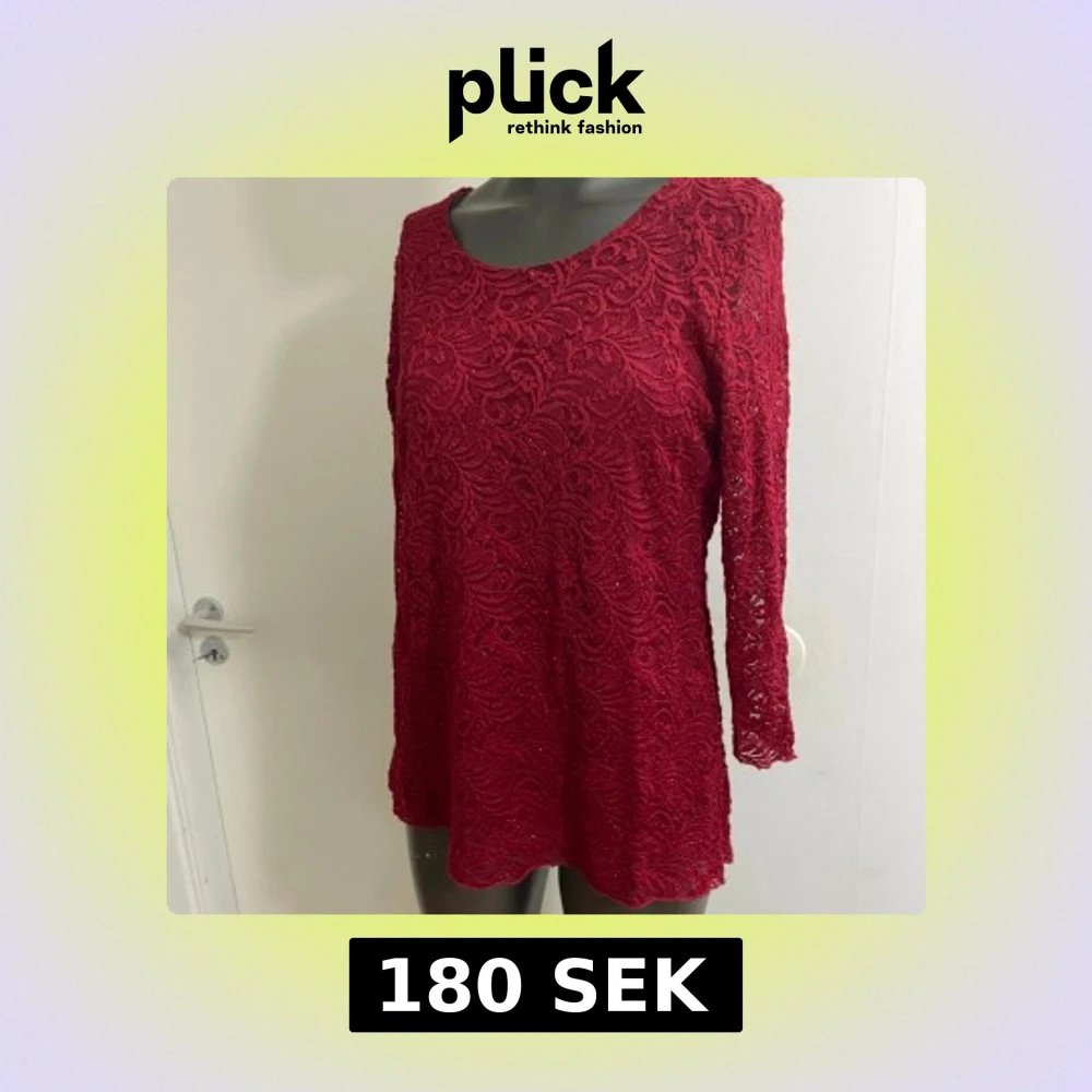 Säljer en snygg röd blus i spets med lång ärm och rund hals. Blusen har ett detaljerat spetsmönster och är fodrad med ett mjukt tyg under. Perfekt för dig som gillar att sticka ut med färg och coola detaljer.