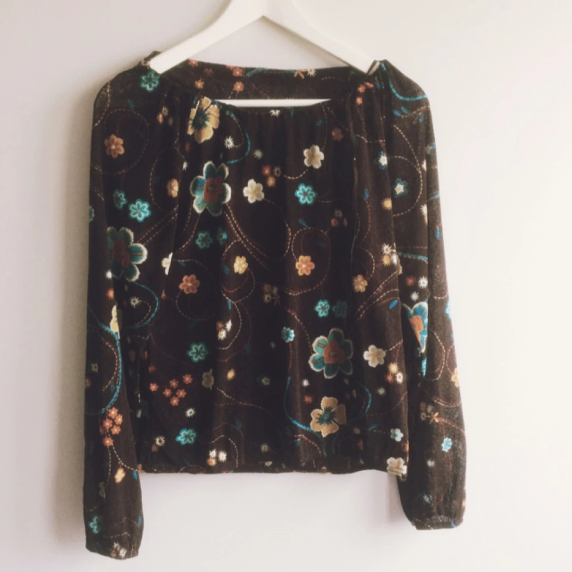 Alltså BLUSEN, så fin men tyvärr för lite använd. Tunt material! Står ej storlek men uppskattas som att passa allt från s-l beroende på hur man vill ha den!