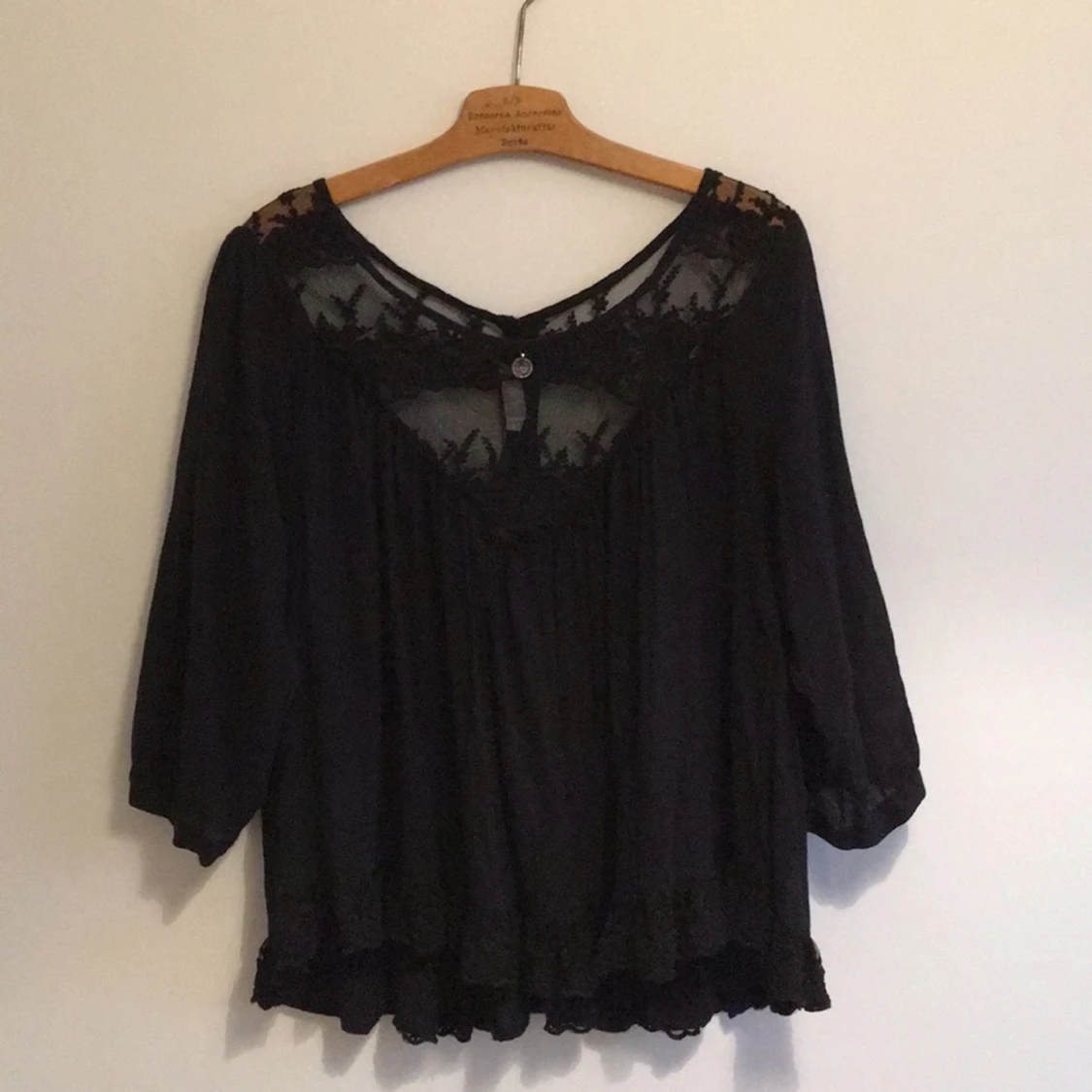 Jättesnygg och välgjord blus med spetsdetaljer från Ajlajk. Ryggen är helt magisk med spets och broderier. Köparen står för frakten.