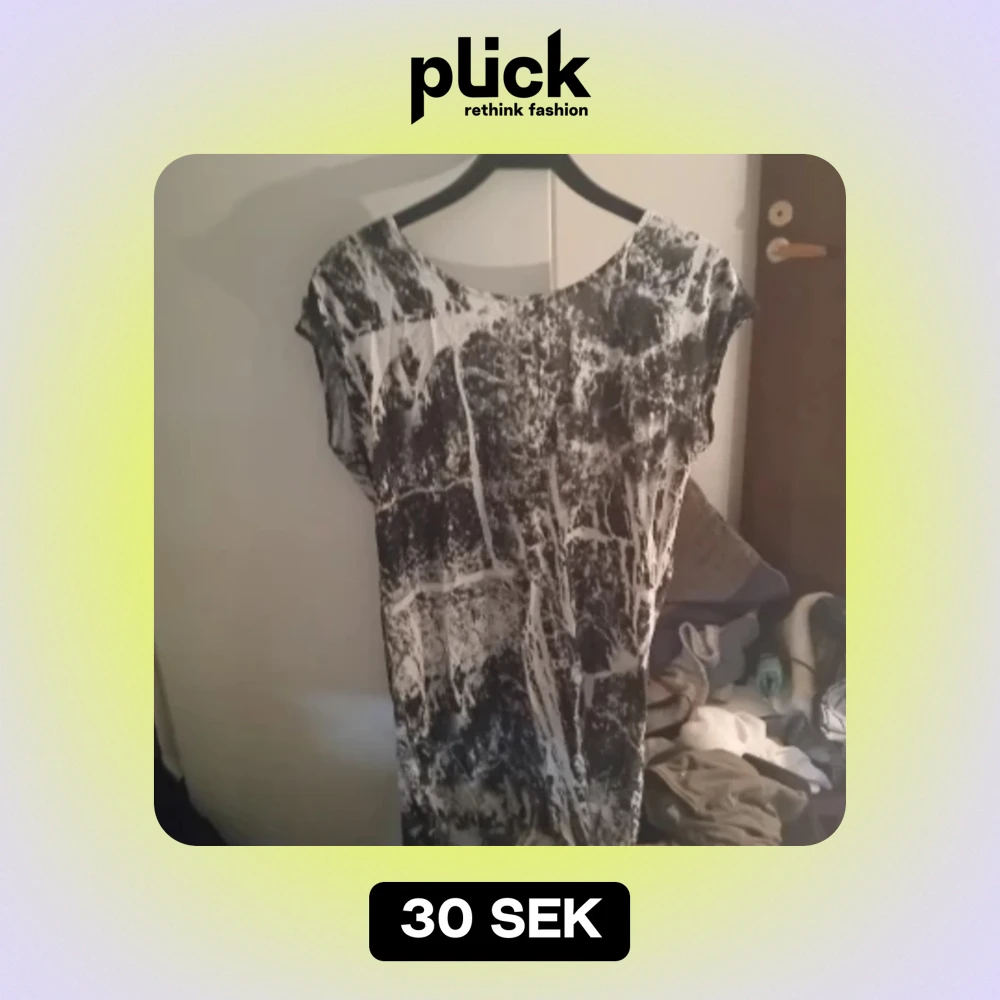 Ärmlös blus stl S i svart/vitt batikliknade mönster med dragkedjor på axlarna. Lång så den går ner wn bit på låren. Fint begagnat skick