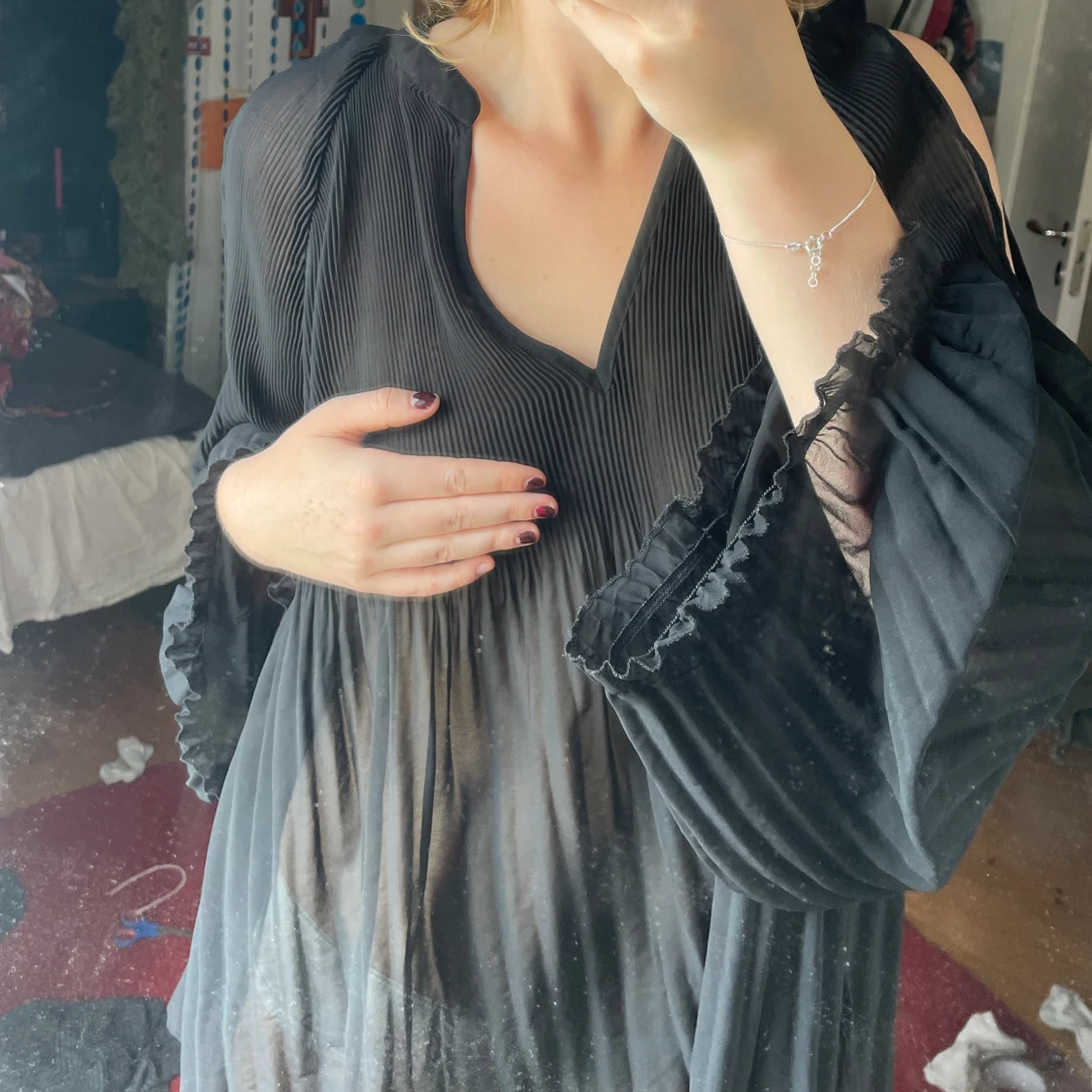 Asfin plisserad tröja! Så elegant och vacker, lägger sig fint på kroppen och är mycket bekväm🥰 bra skick. Meddela vid funderingar❤️