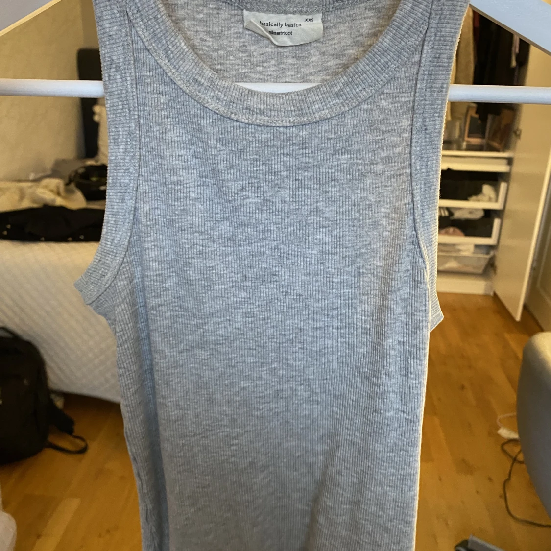 Ett grått tight linne ifrån Gina. Superbra basic att ha i garderoben! Ribbad, kom privat för mer info och bilder ❤️