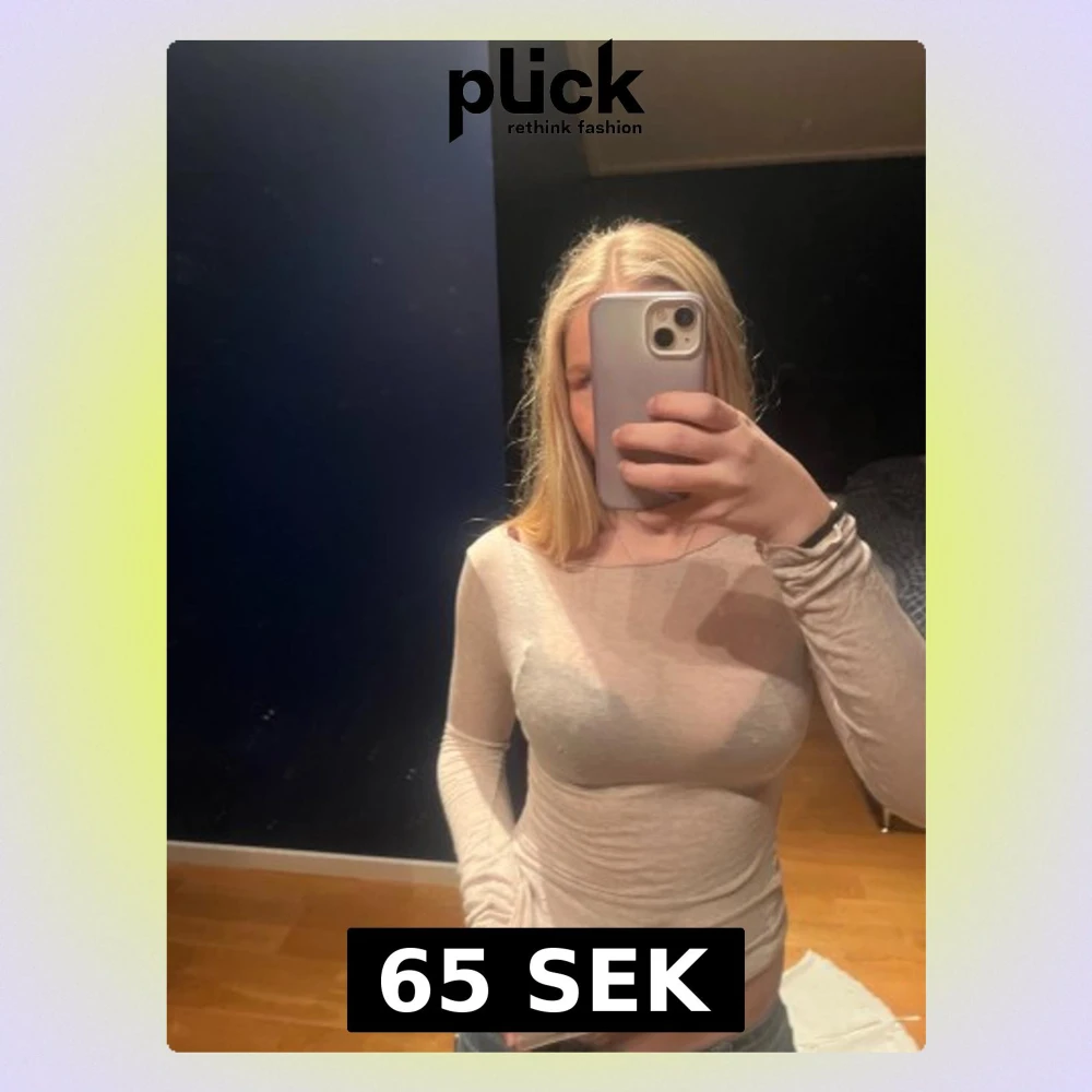 Säljer en tunn och mjuk långärmad topp i beige färg. Modellen är figurnära med rund hals och stretchigt material som sitter snyggt på kroppen.