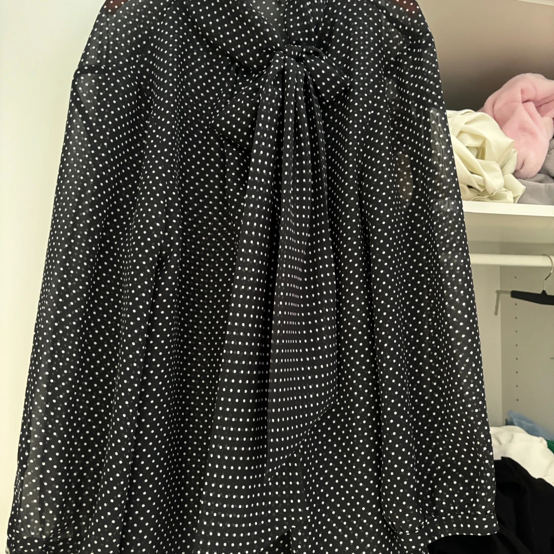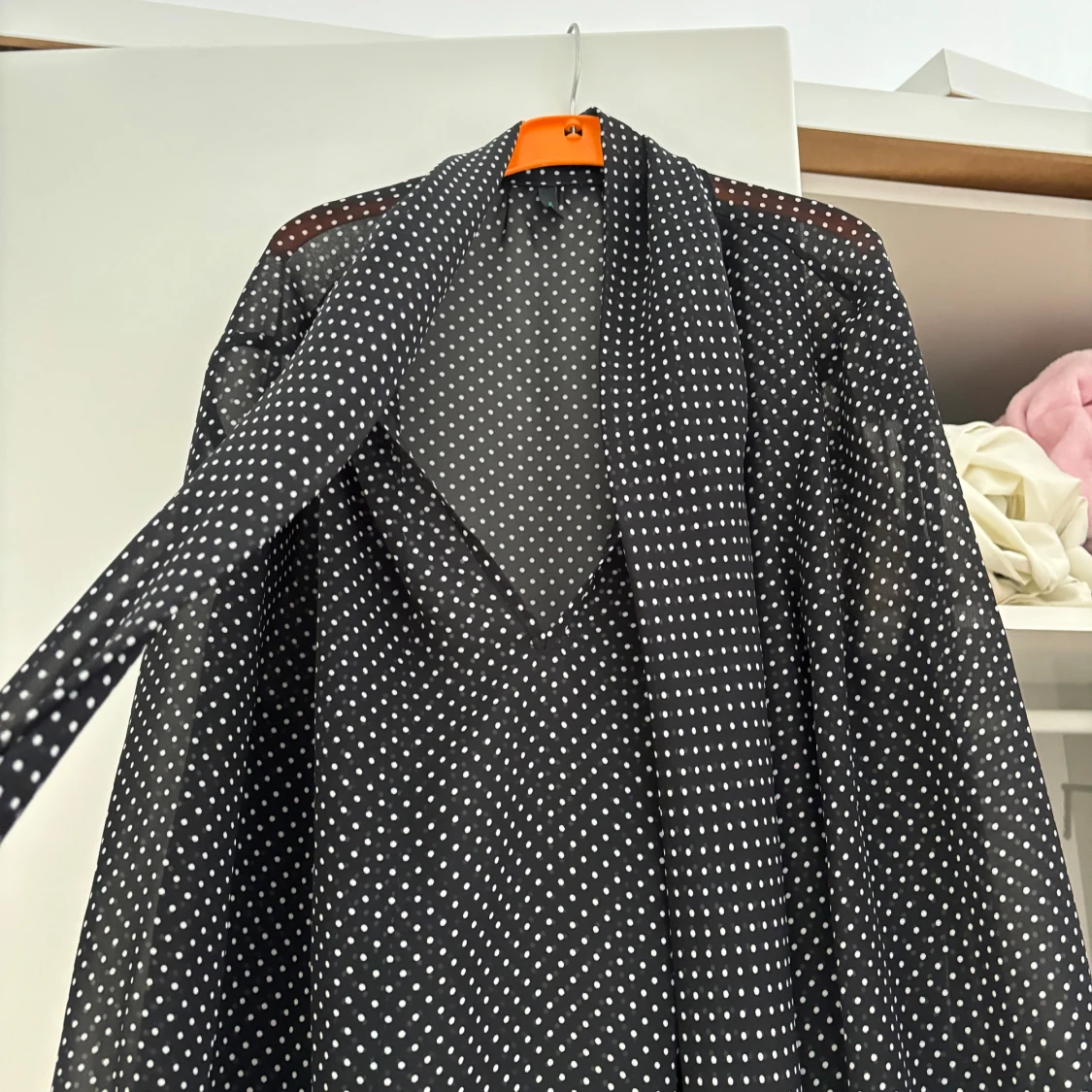 Min favoritblus verkligen så fin. Knyts i en knut vid halsen och är v-ringad. Toppenkvalite och skick!!