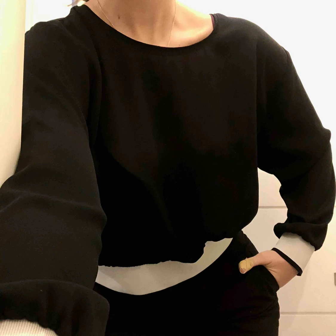 Superfin tröja med vita muddar och svart kant. Luftiga ärmar. Knappt använd! Möts i Jönköping eller Stockholm, annars står köparen för frakt💞