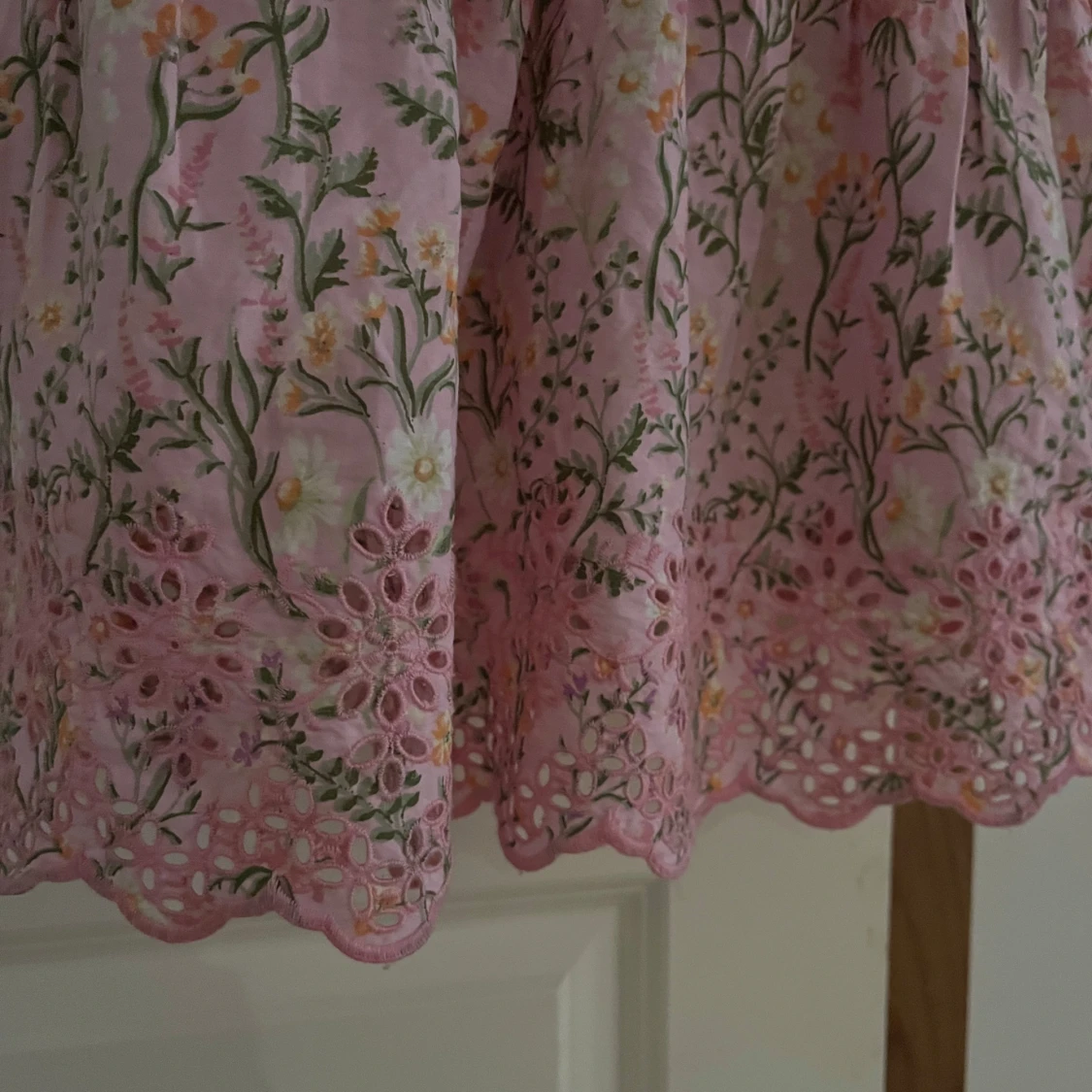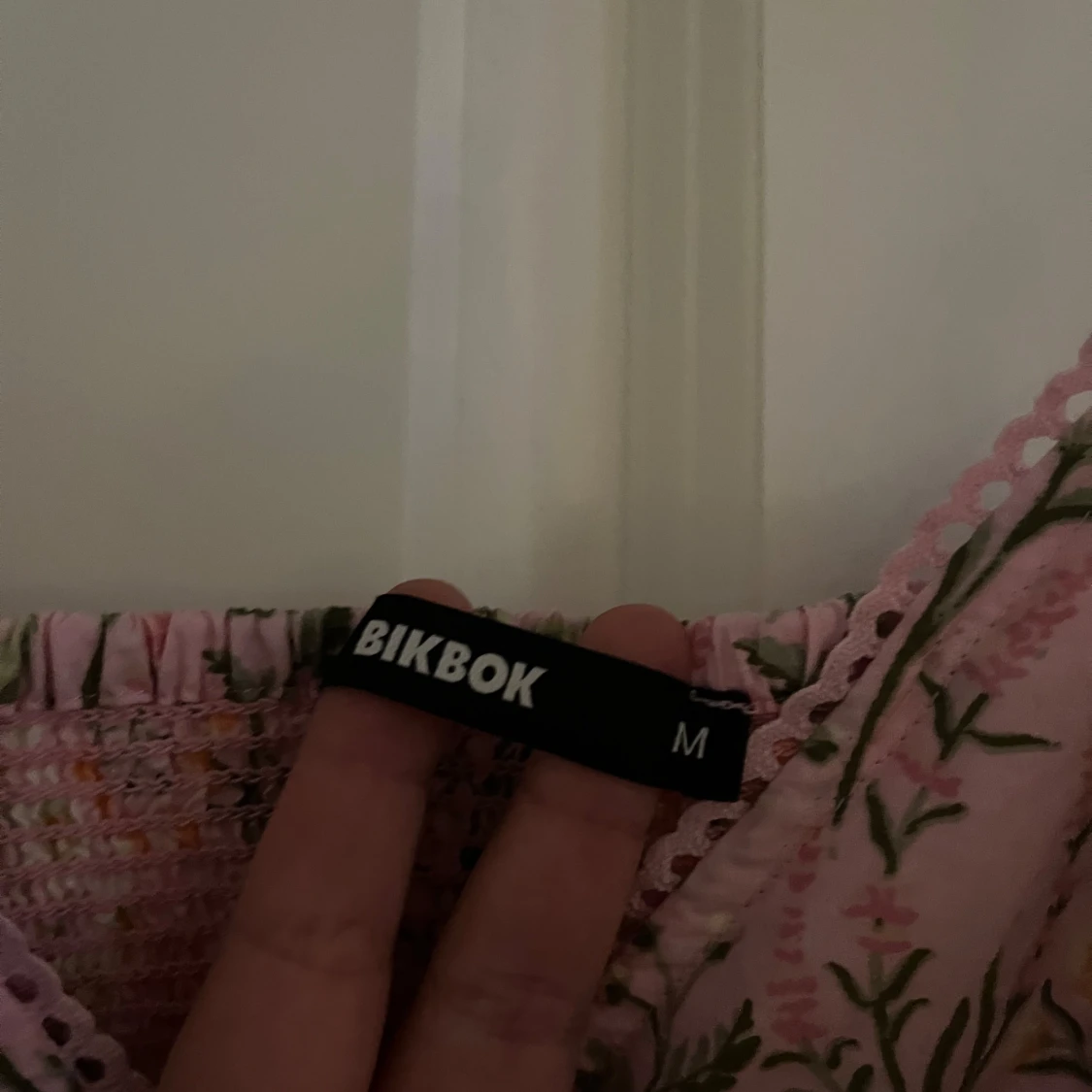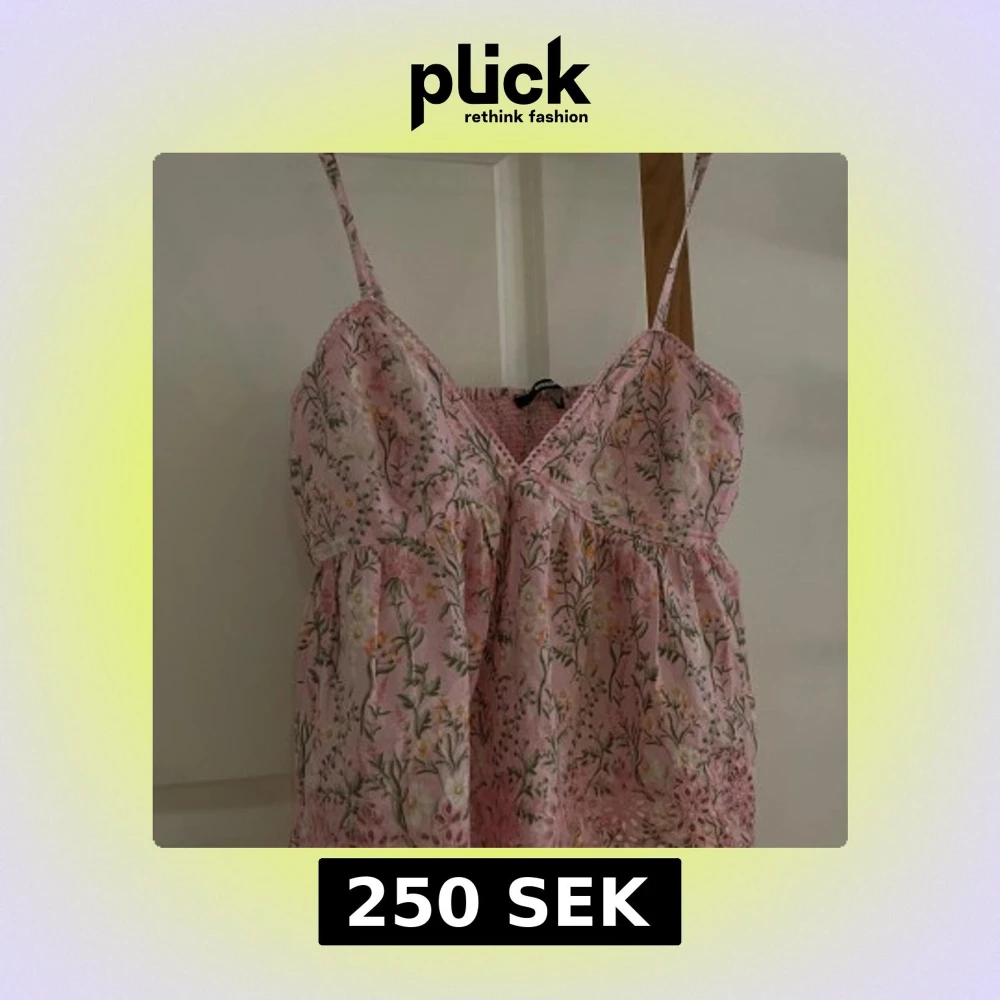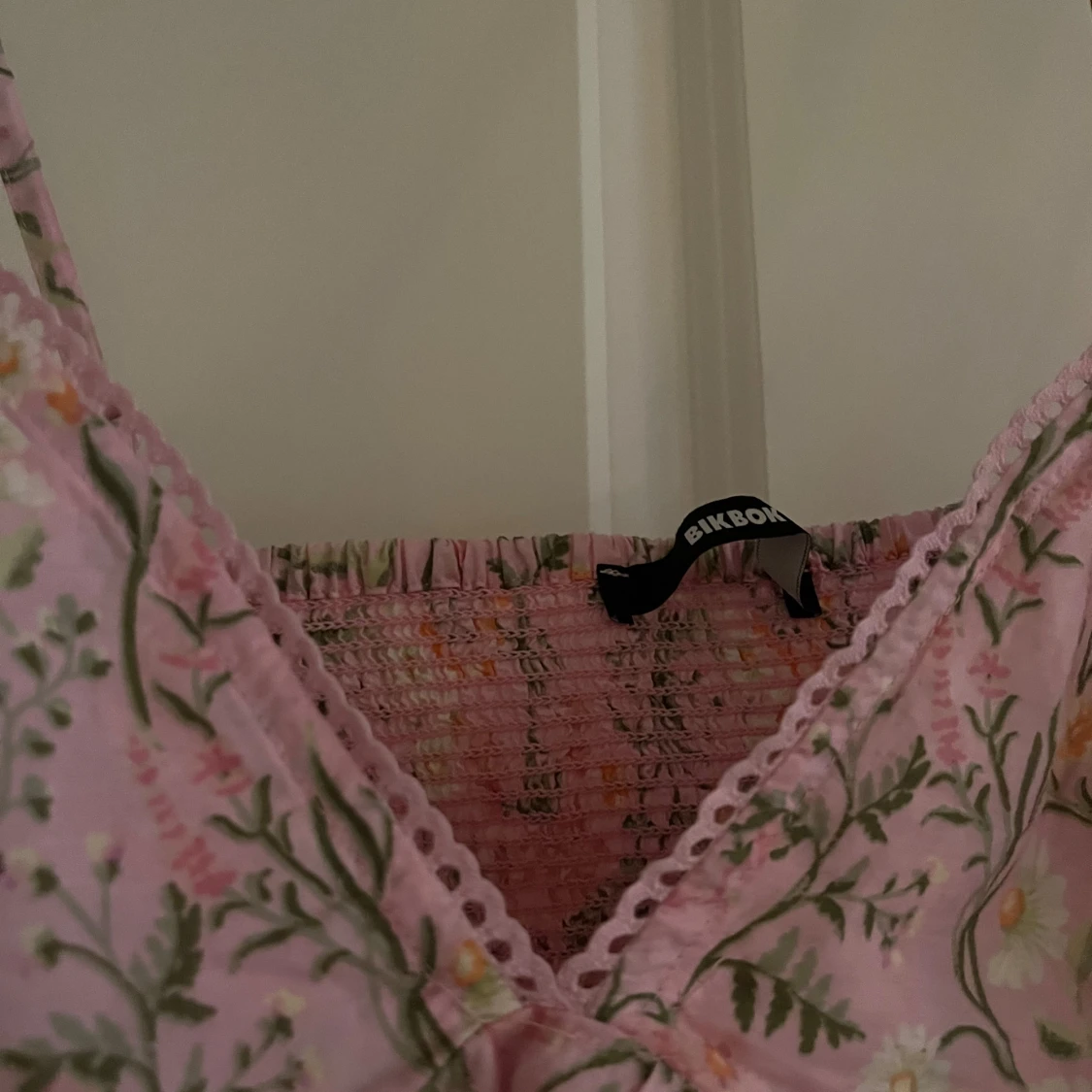 Supersöt rosa topp från BikBok med smala axelband och v-ringning. Toppen har blommigt mönster, broderade detaljer och spetskant nertill. Perfekt för sommarens alla tillfällen!