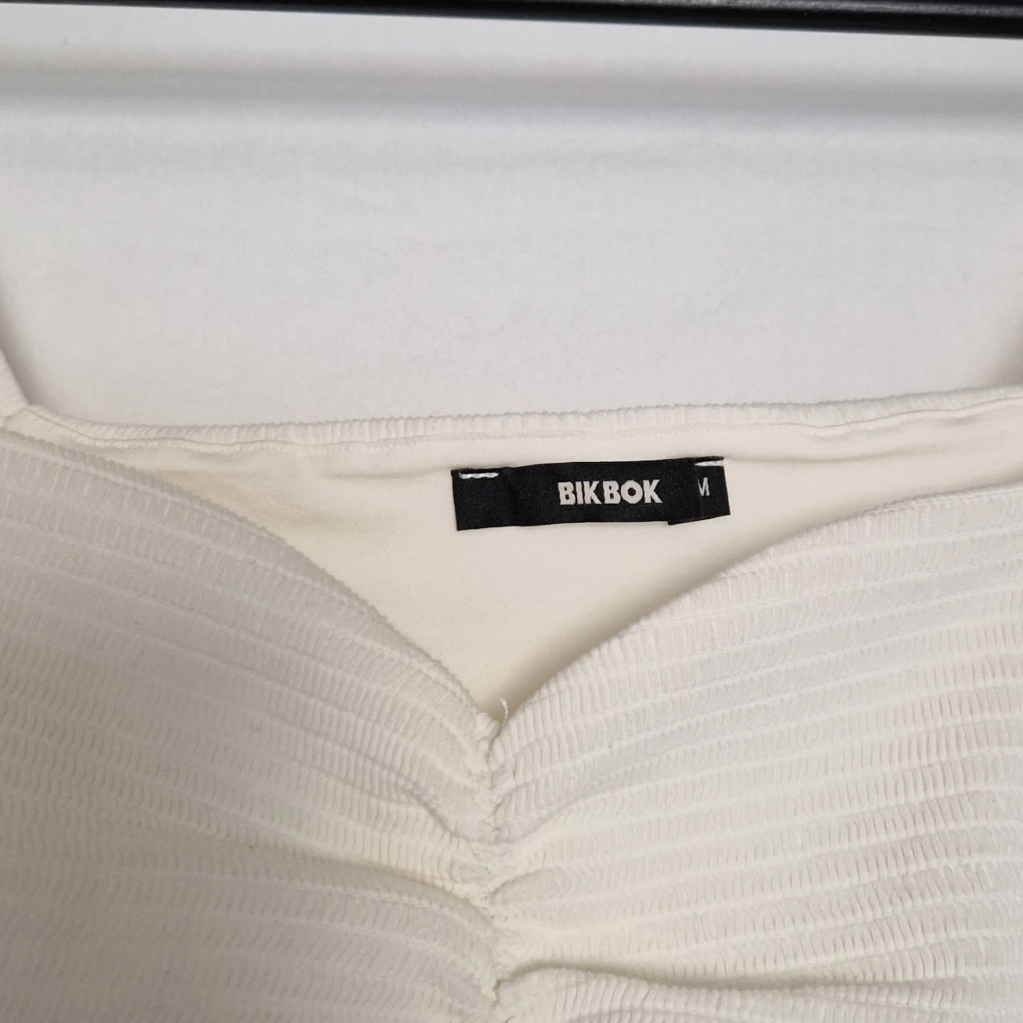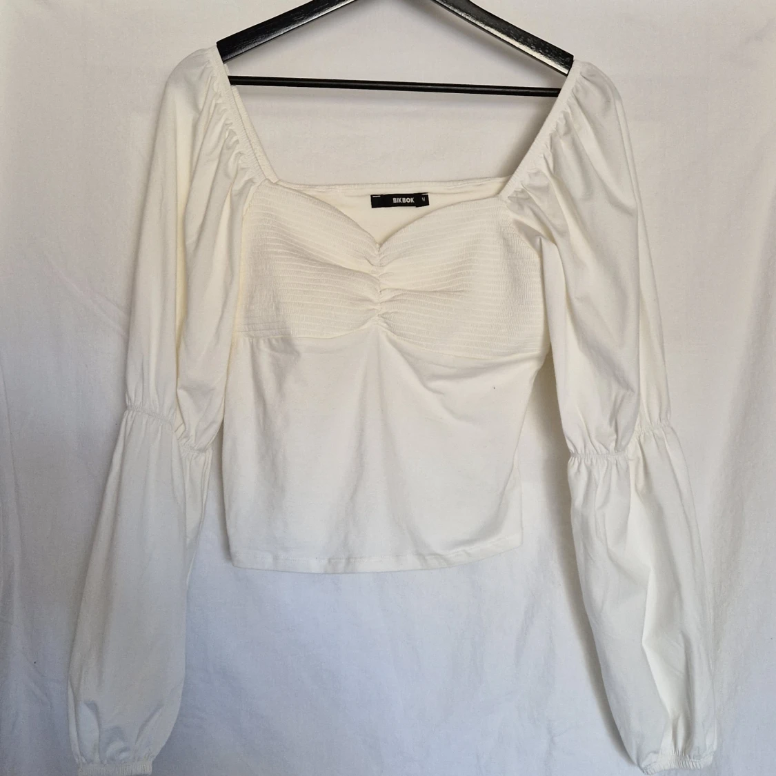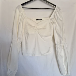 Vit blus med puffärmar (sååå fin nu till sommaren). Aldrig använd, från bikbok i strl m