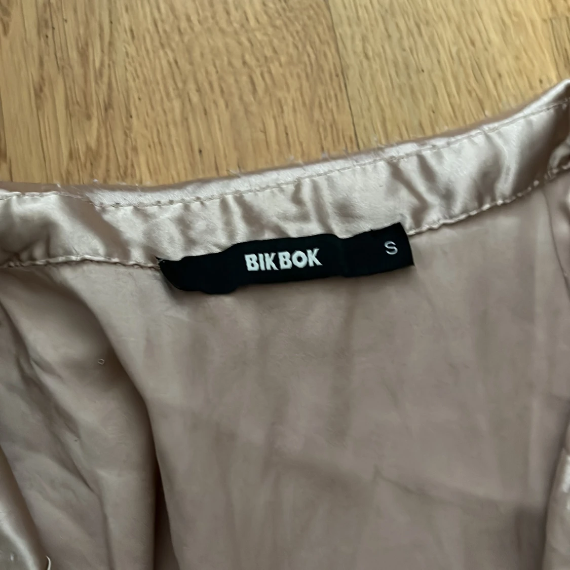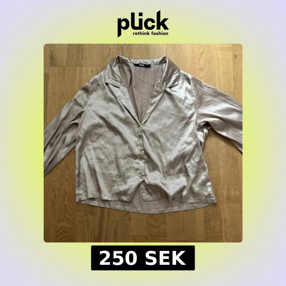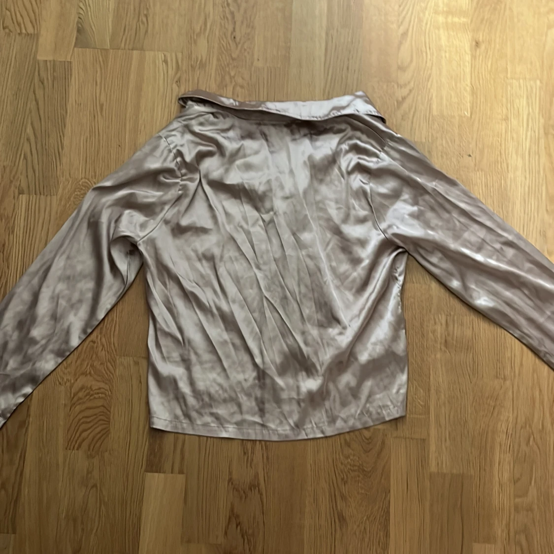Snygg beige pyjamas blus i siden från Bik Bok. Blusen har långa ärmar och knappar framtill. Perfekt för en elegant look.