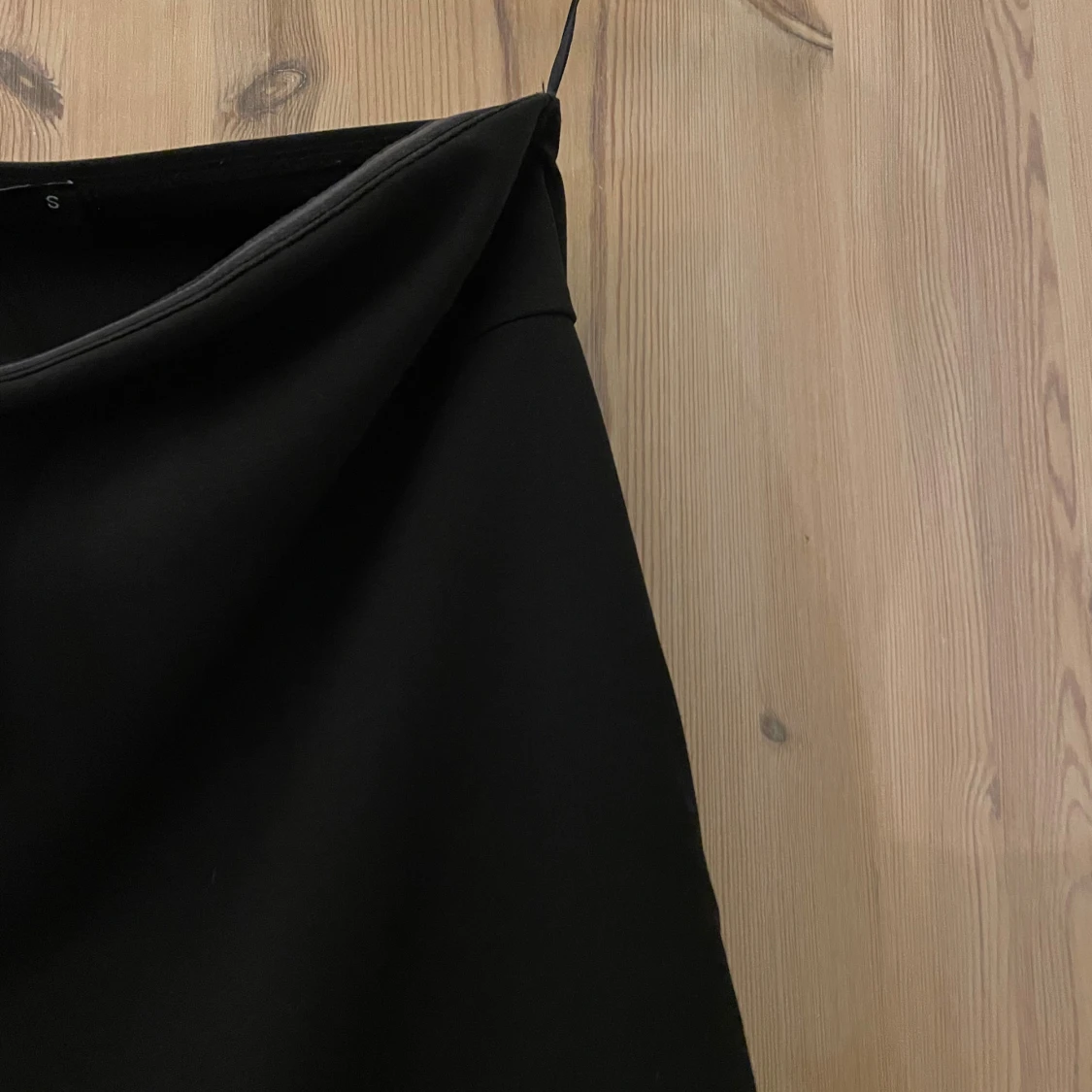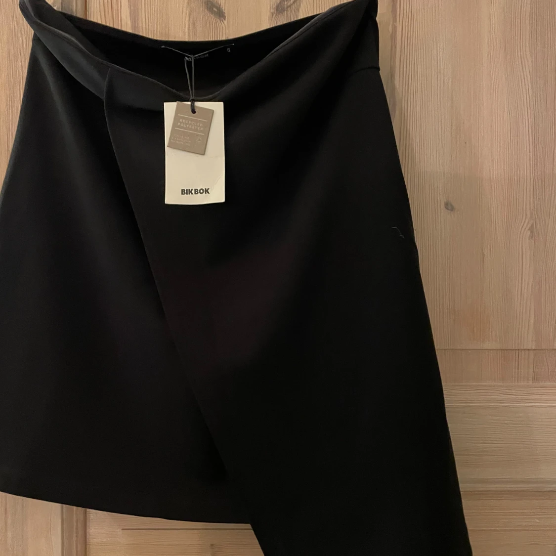 Svart omlottopp från Bik Bok med stilren design. Toppen har en lätt A-linjeform och är tillverkad i ett mjukt, följsamt material som ger en snygg siluett. Perfekt för dig som gillar minimalistisk och trendig stil.