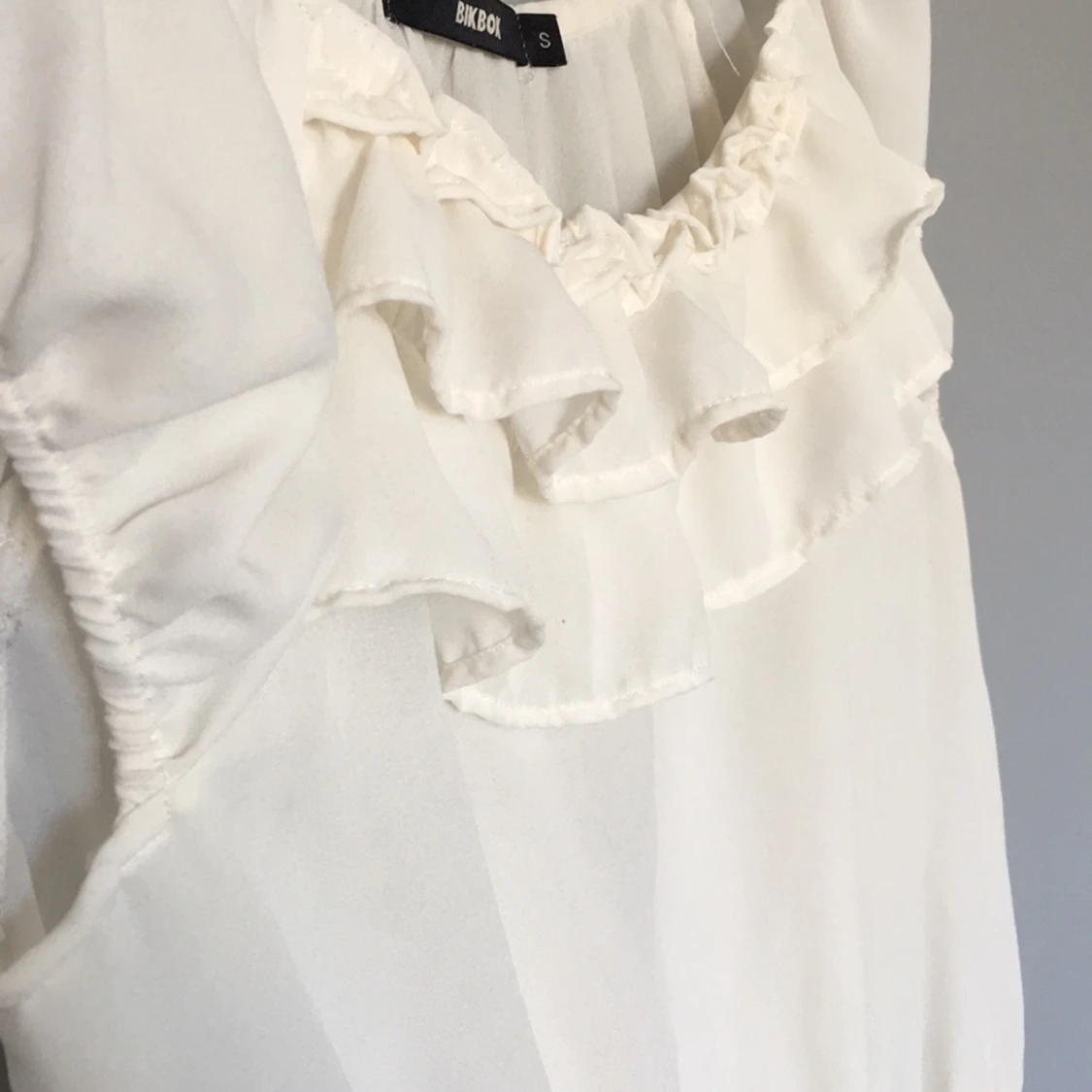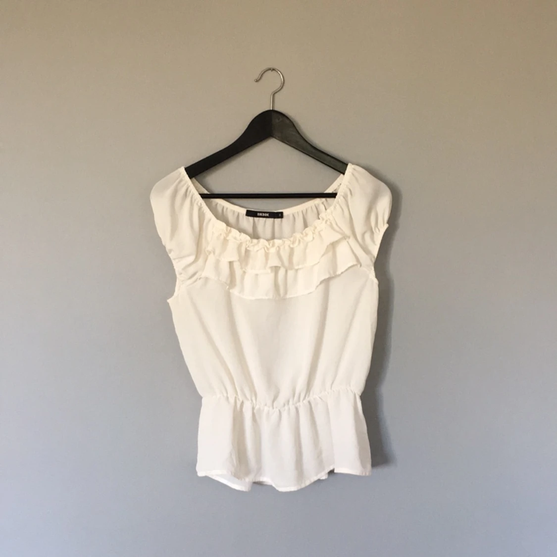 Söt cremevit blus med volanger och pleplumeffekt. Först till kvarn!