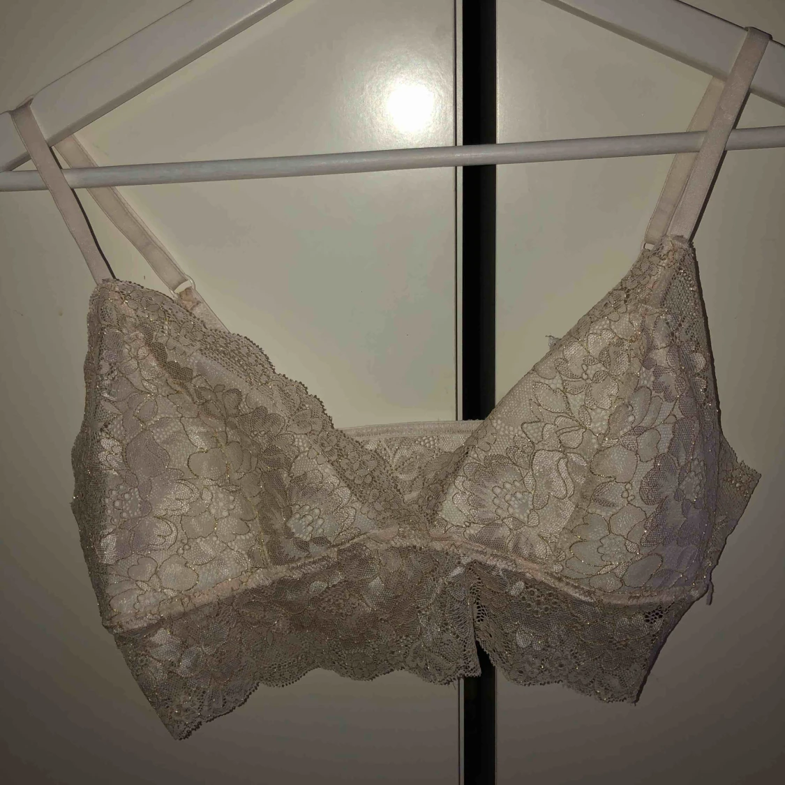 Vit snygg spetstopp med gulddetaljer. Använd en gång, som ny.