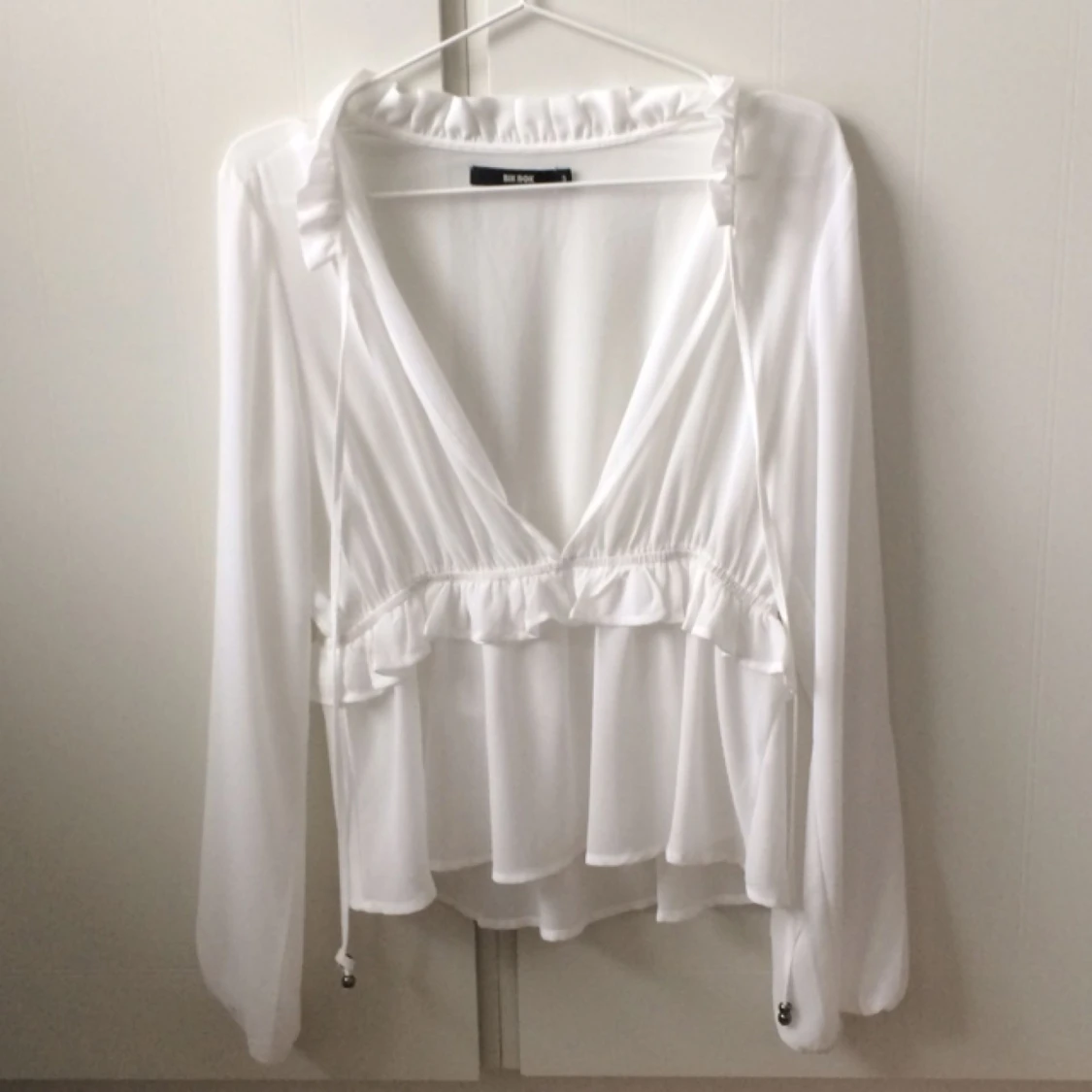 Jättefin, lite transparent blus, från BIKBOK i storlek S. Använd endast 1 gång. Frakten ingår i priset!