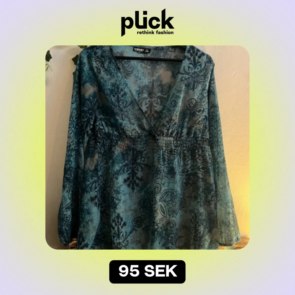 Unik genomskinlig blus, blå med jätte fint tryck! 💙🩵