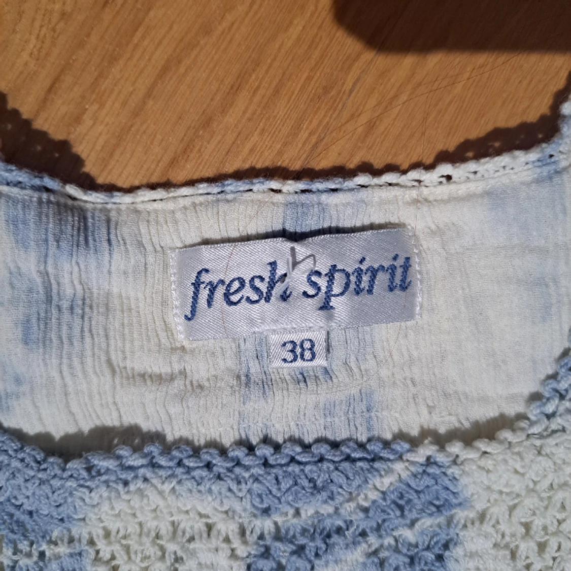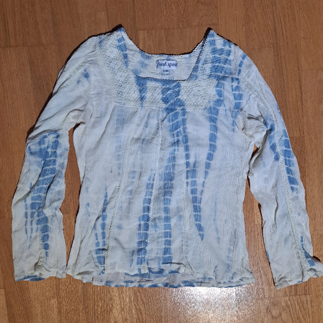 Vit och blå tie dye topp med fina detalier. Storlek 38.