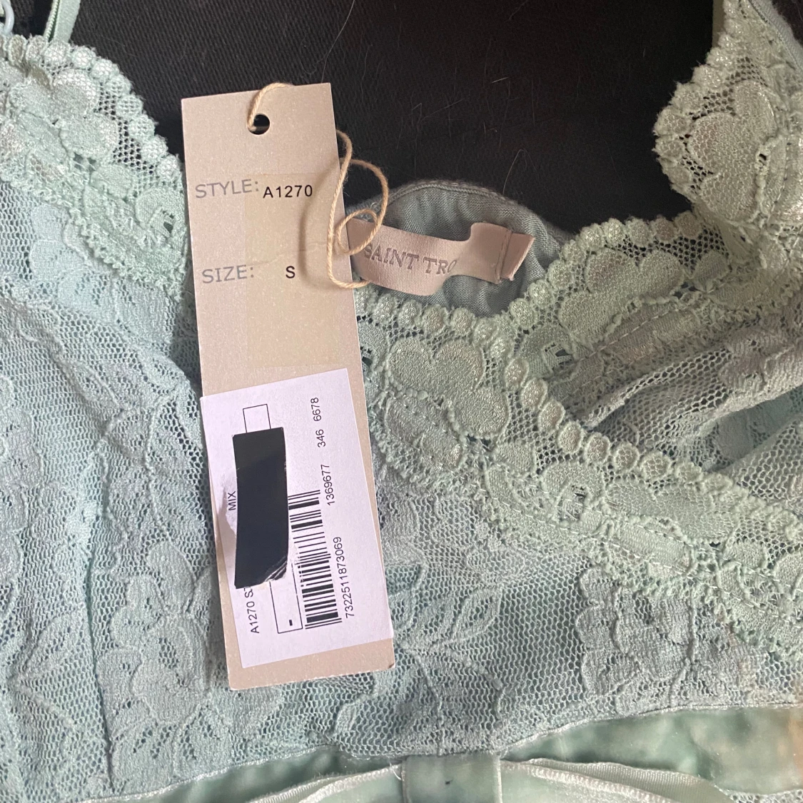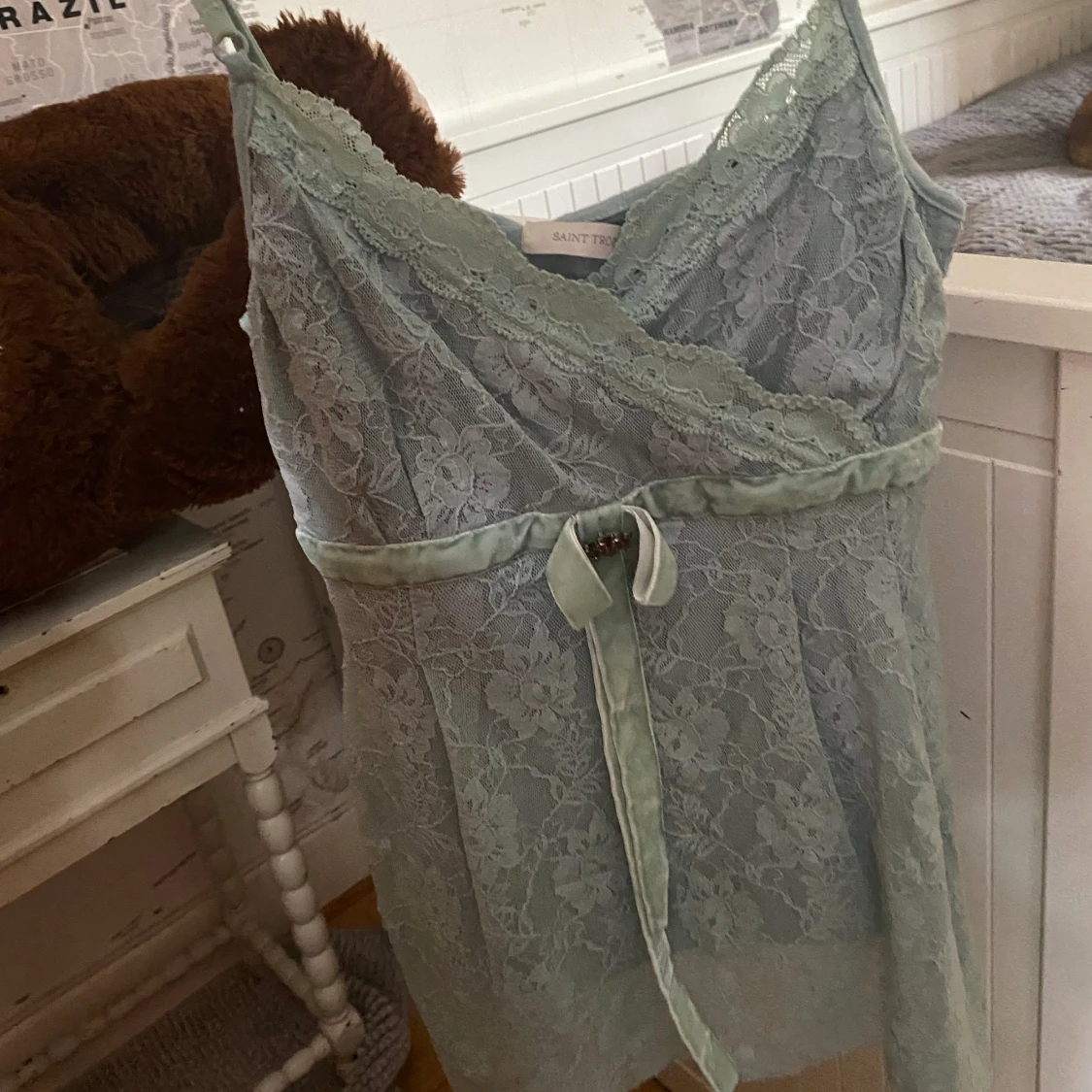 Jättefint oanvänr blått spets linne ( är lite mera bli i verkligheten)