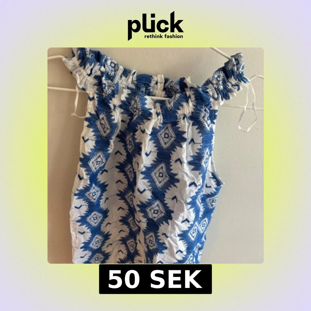 Supersöt blåvit blus/linne från Holly & Whyte med elastisk smock upptill och axelband. Blusen har ett snyggt geometriskt mönster och är gjord i tunn bomull, perfekt för varma dagar. Lätt och luftig med avslappnad passform.