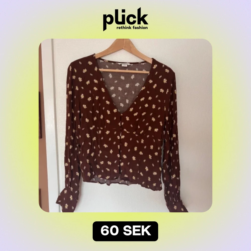 Fin brun, blommig blus i nyskick från Monki. Knäppning över magen och luftiga ärmar. Endast använd ett par få gånger 🌷 Stl M 🌷
