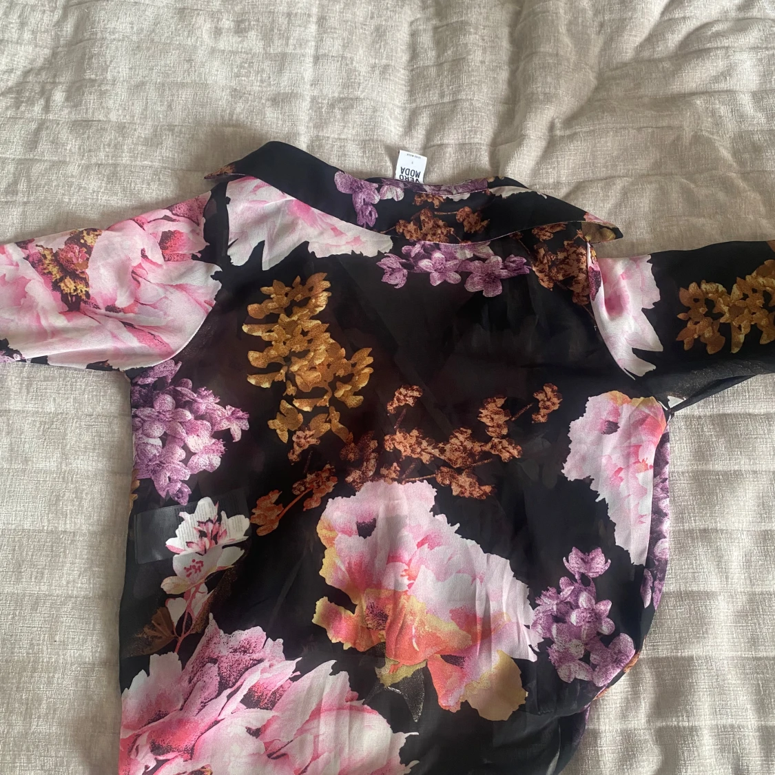 Svart blus med blommor på