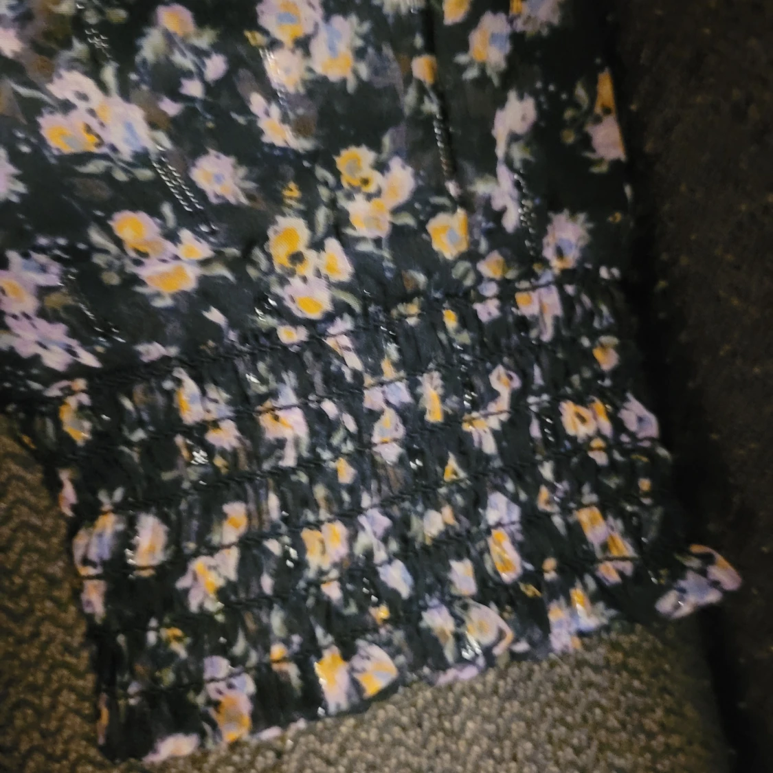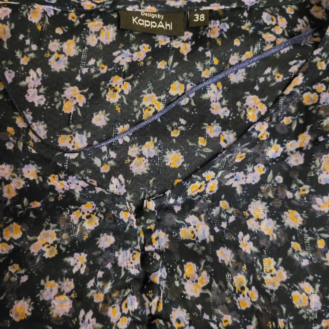 Säljer en superfin blommig blus från KappAhl i storlek 38. Tunt material, lätt genomskinlig. Den har fyra små söta knappar upptill och söt resår i ärmsluten.