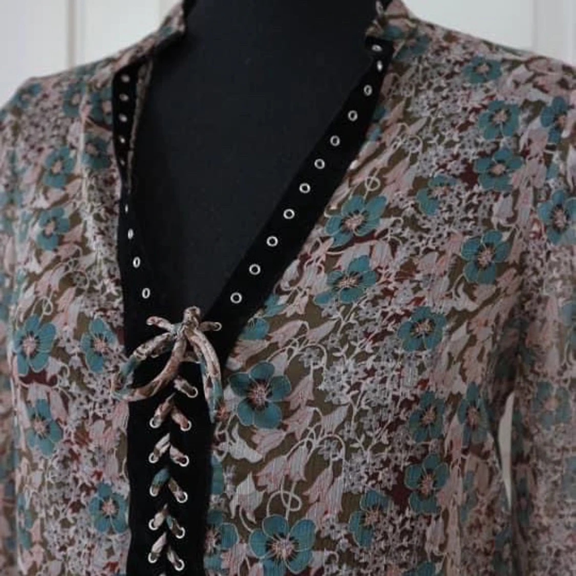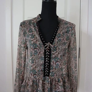 Säljer en ny blommig-blus i en peplum modell med knytning framtill. Blusen är i mycket bra skick! Enbart använd någon gång och den är köpt från zara
