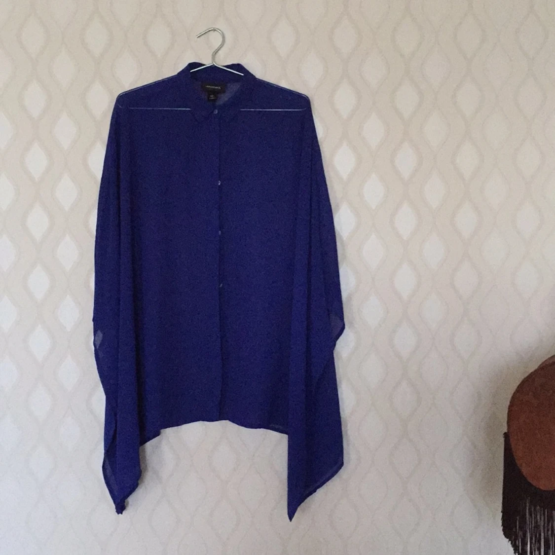 kornblå transparant skjorta från monki, vida ärmar, jätte snygg till ex leggings eller jeans. i princip aldrig använd!