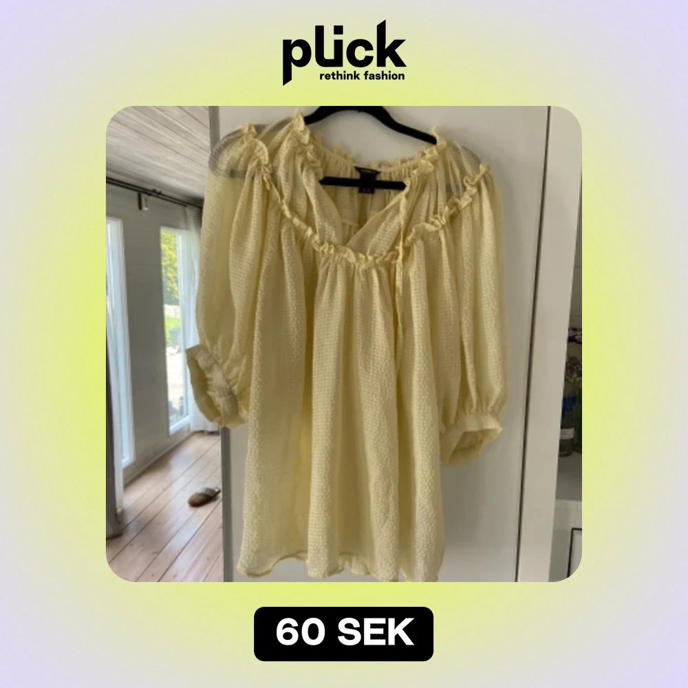 Lång ljusgul blus med fina detaljer! Perfekt till sommaren över ett par shorts t.ex