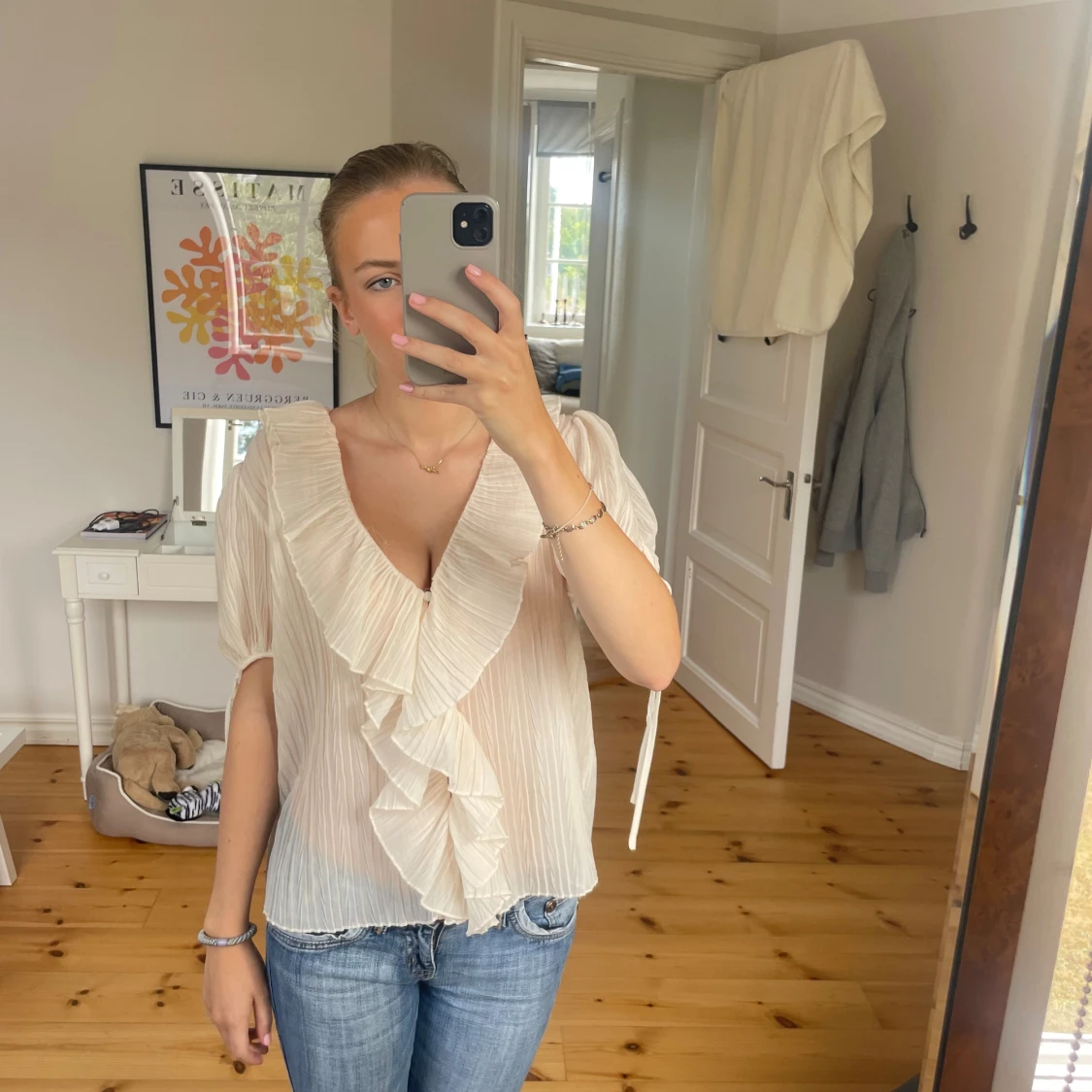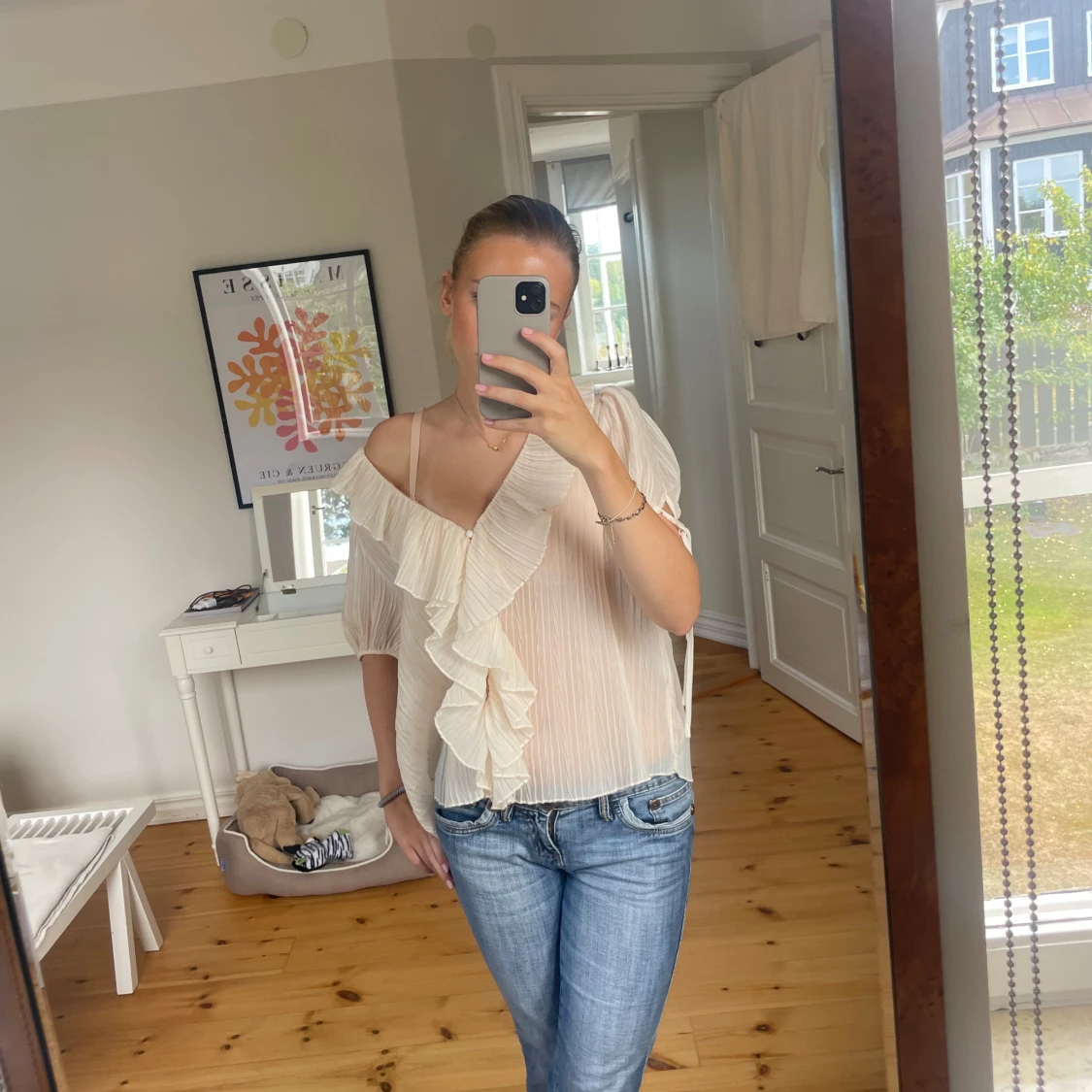 Säljer denna så fina blusen från Zara, den är endast använd ett fåtal gånger så den är i riktigt bra skick!💕
