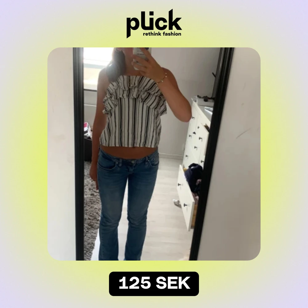 Jätte fin randig blus med volanger, perfekt för sommaren🤩❤️inga defekter och passar mig som är 14år/171cm