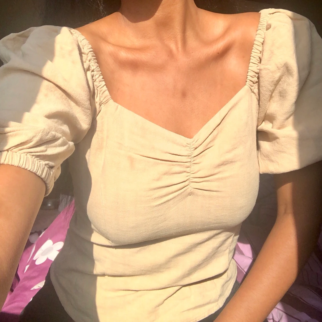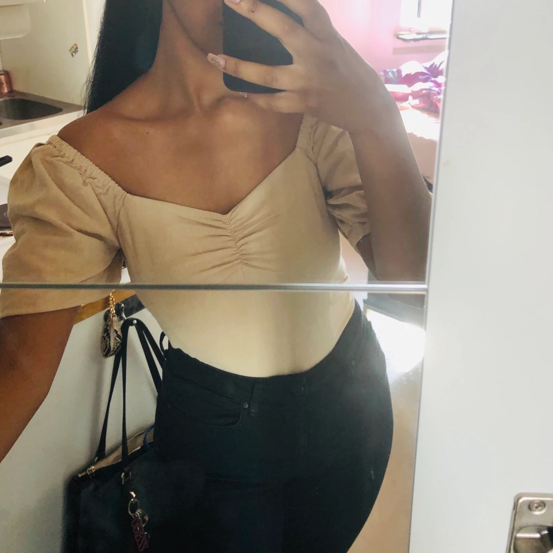 Beige ballong blus som kan användas off shoulder och över axlarna. Bild nmr 2 är mest rättvis bild på tröjan! Stl xs men passar mig som är S. 120kr exkl frakt. Kan även mötas upp!🌸