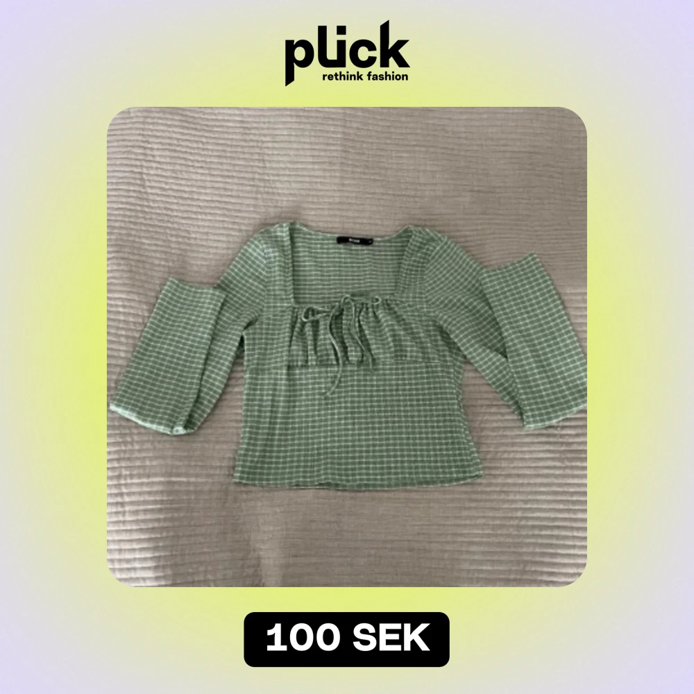 Säljer en somrig grön/vit croppad blus från BikBok då den inte kommer till användning längre✨