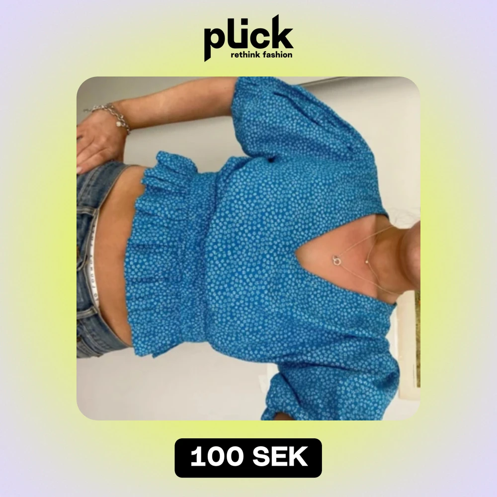 Blå blus - Söt blå blus med vita blommor, puffärmar, och urringning från BikBok. ❤️
