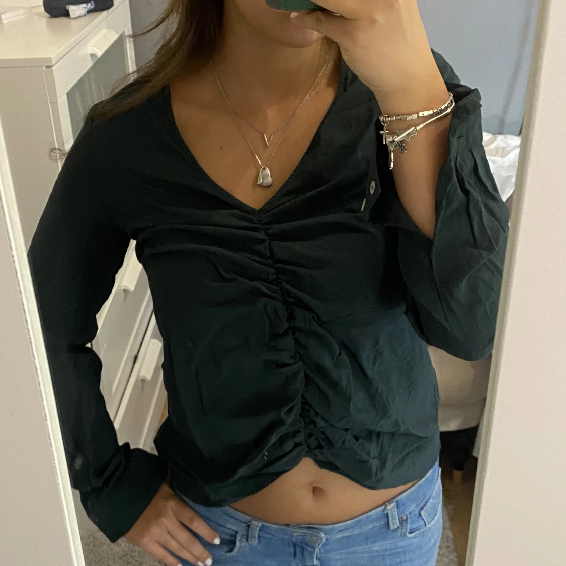 Säljer den här jätte söta gröna blusen då den tyvärr är för liten på mig. Den är fint skick och sparsamt använd, tveka inte att höra av dig vid eventuella frågor eller funderingar 🌟