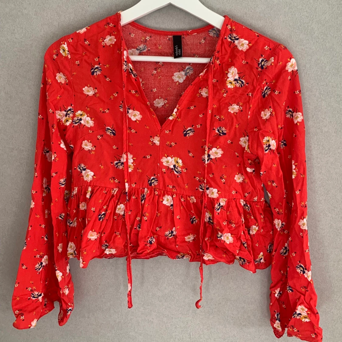 En väldigt fin röd blommig topp väldigt bra skicka. Har köpt den secondhand. Perfekt till sommaren❤️