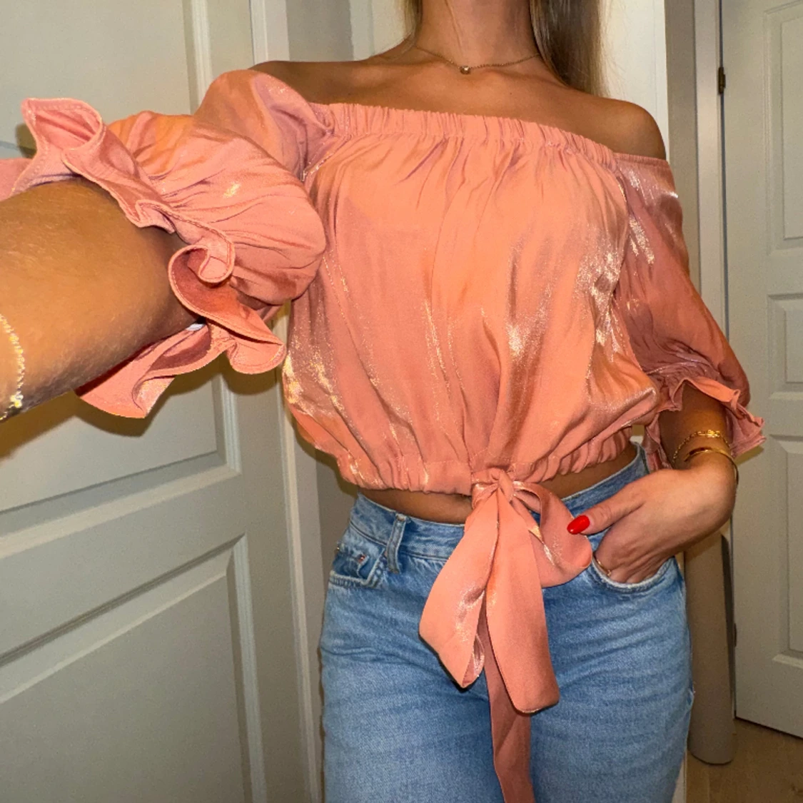 Säljer denna jätte fina blusen från rut&circle i storlek xs. Glansig i tyget, aprikos färgad