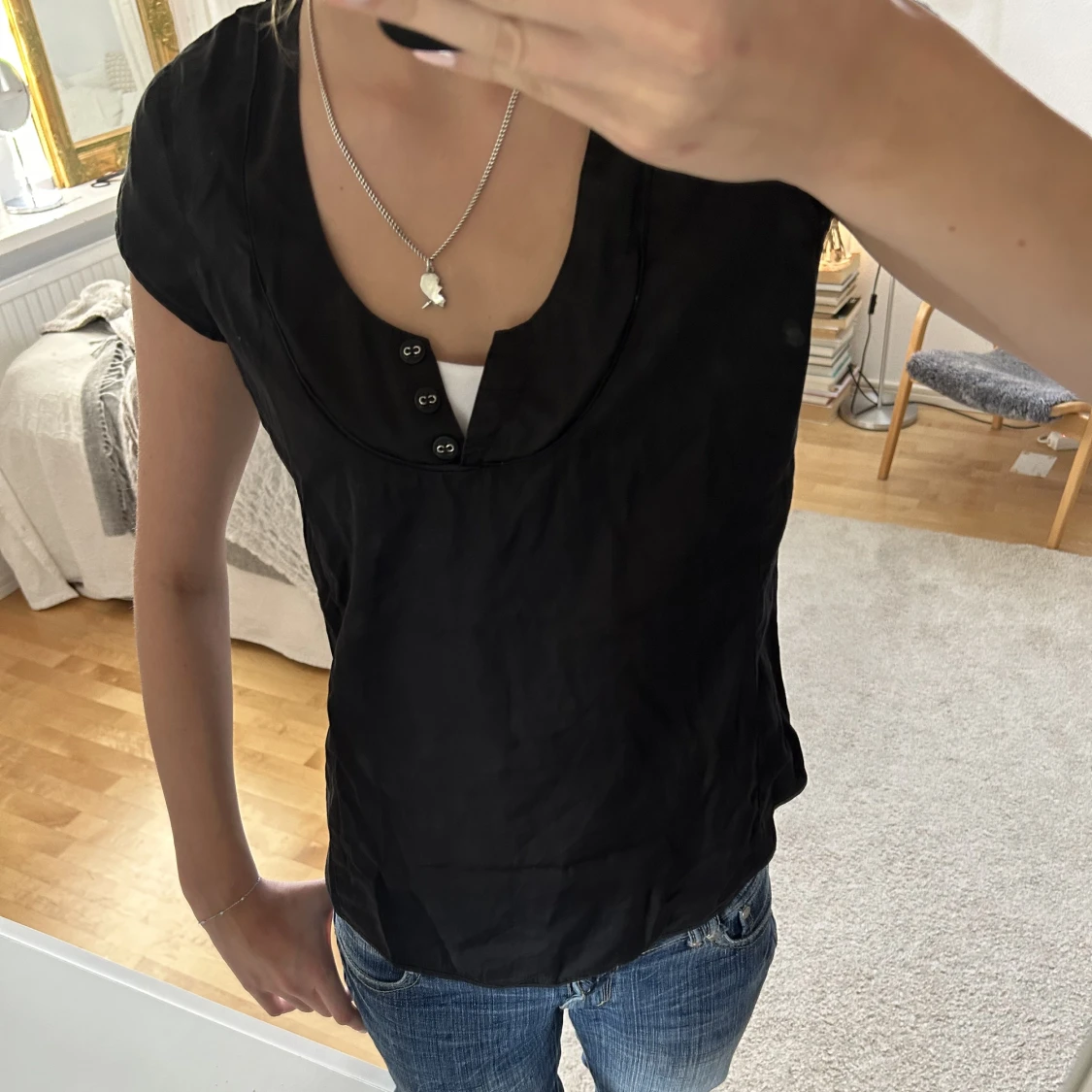 Jättefin svart blus från Filippa k med söt knäppningsdetalj!