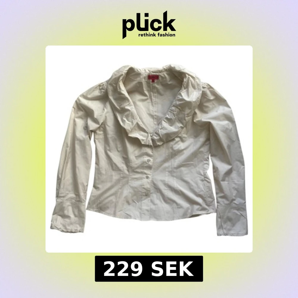Elegant kräm-vit blusskjorta i ett tunnare material med knappar och krage 🤍*liten lätt missfärgning på baksidan av ärmen (sista bilden), märks knappt! Jag brukar ha strl XS/S i toppar för referens!