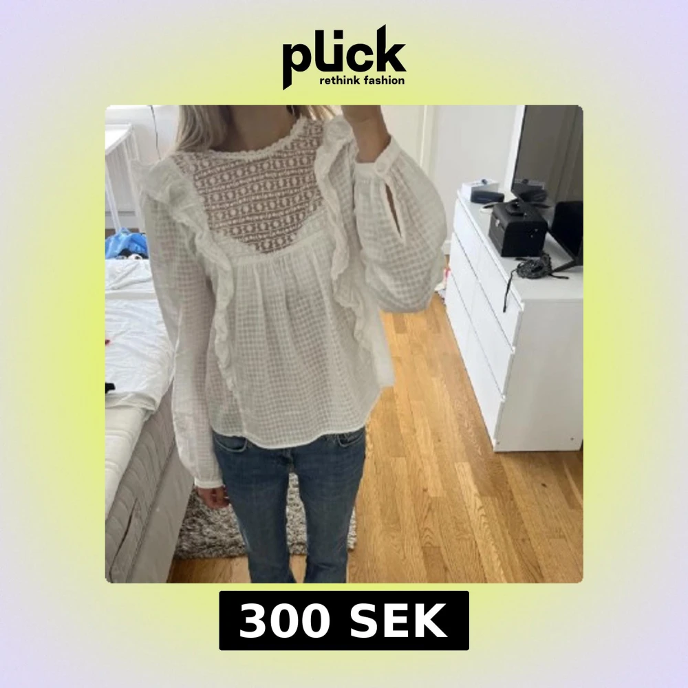 Snygg blus från Gina - Jättesöt blus!❣️Enda lilla defekten är att jag använt säkerhetsnål vid urigningen så det är en liten defekt från det men inget stort🥰Pris går att diskutera!