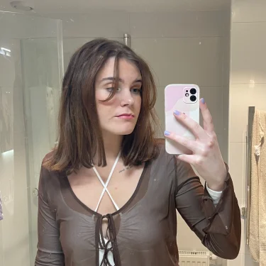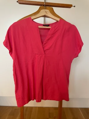Rosa blus med bortklippt materiallapp, i övrigt inga anmärkningar. Ganska rymlig S.