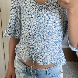 söt ljusblå blus med blommor på💗