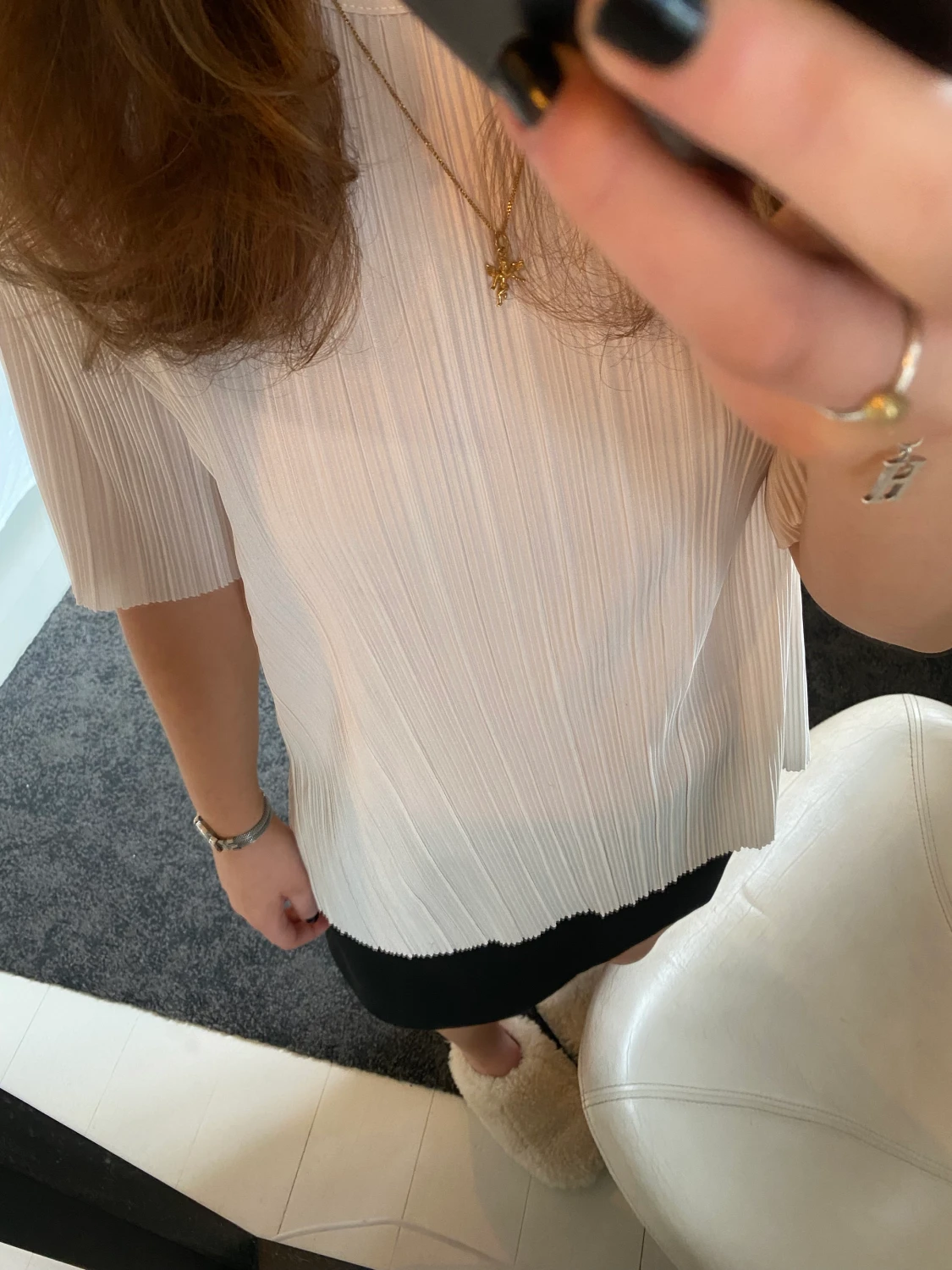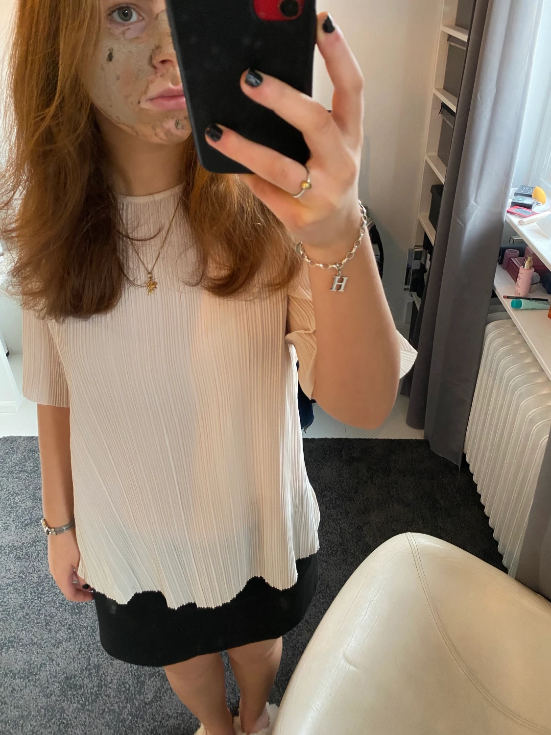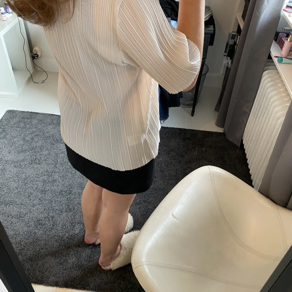 Säljer en super snygg blus topp i en krämvit färg med lite plissering. Super snygg att ha med kostymbyxor på middagar och väldigt stilren❤️❤️
