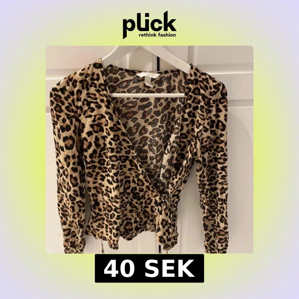 Säljer en snygg leopardmönstrad omlottblus från H&M i storlek 34. Blusen har lång ärm, v-ringning och knyt i sidan. Färgerna är beige, svart och bruna toner. Perfekt för dig som vill sticka ut med ett djuriskt print och coola detaljer.