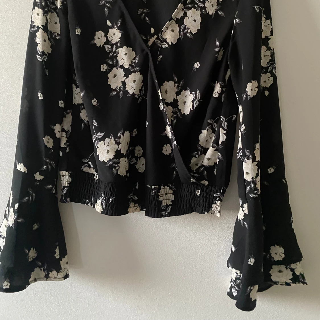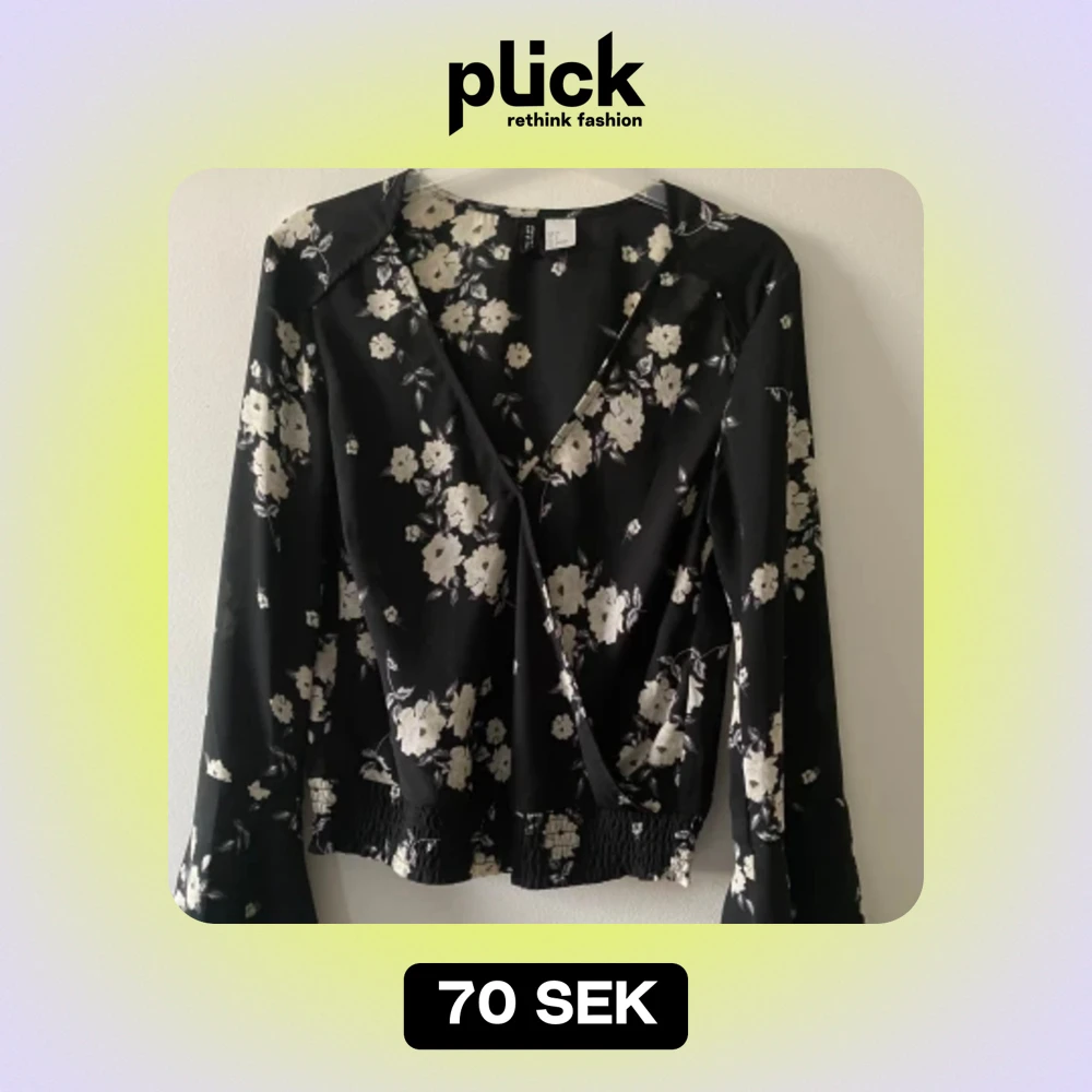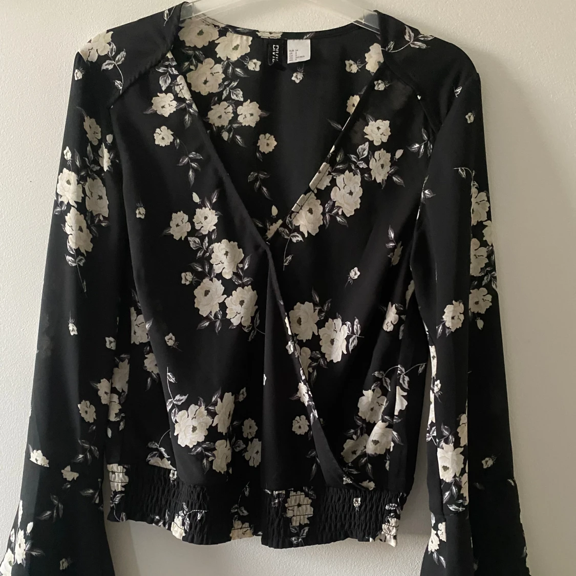 Jättefin blus från hm, enkel och bekväm att ha på sig. Storlek 34 i svartmönstrad färg. Nyskick. Från hm.