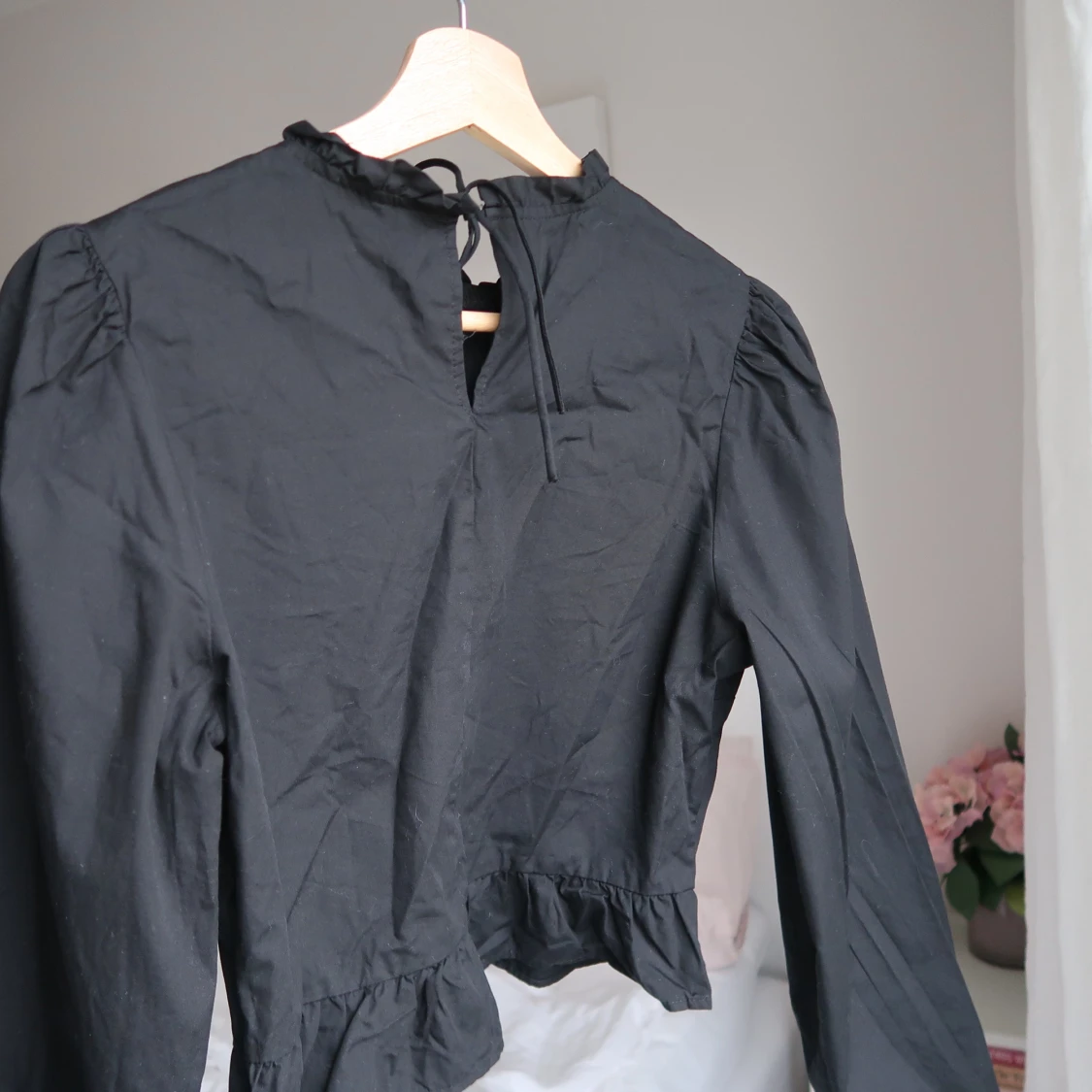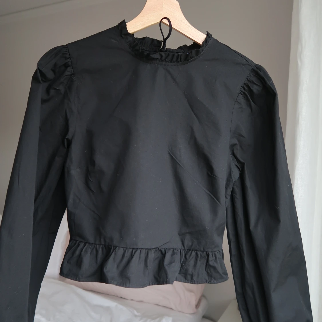 Svart volang topp med tight midja