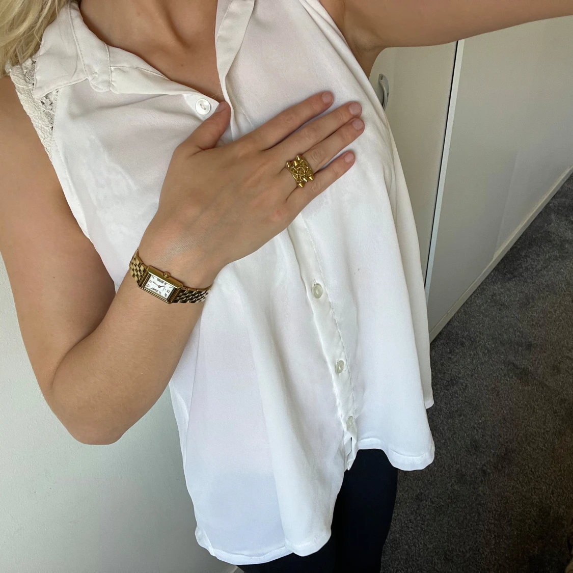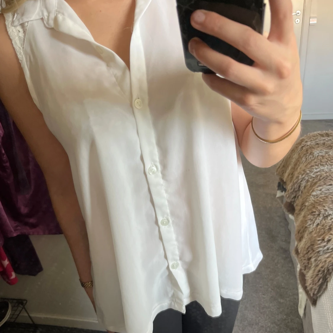 Vit kort armad blus från Kappahl. Stl 158 endast en liten fläck fram som jag kan försöka tvätt bort💕🫶🏻☺️