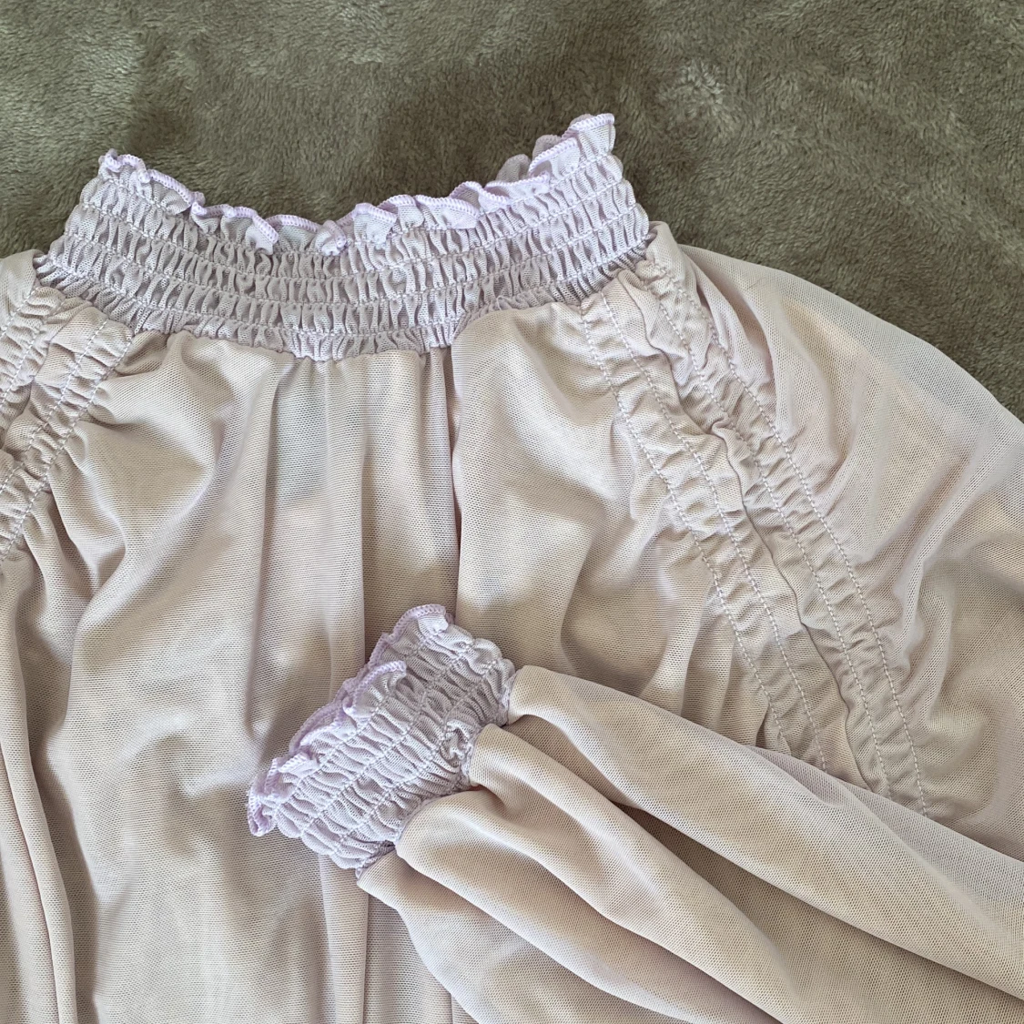 En pastellila blus i mesh med flera lager varav ett av dem är beiget. Ett plagg som passar vid många olika tillfällen, särskilt på hösten eller vintern då den kan bli lite varmare.
