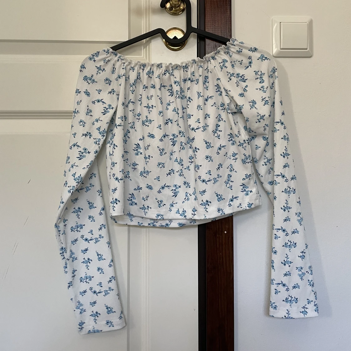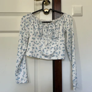 Vit blåblommig ofshoulder blus, aldrig använt, den passar inte mig bra.