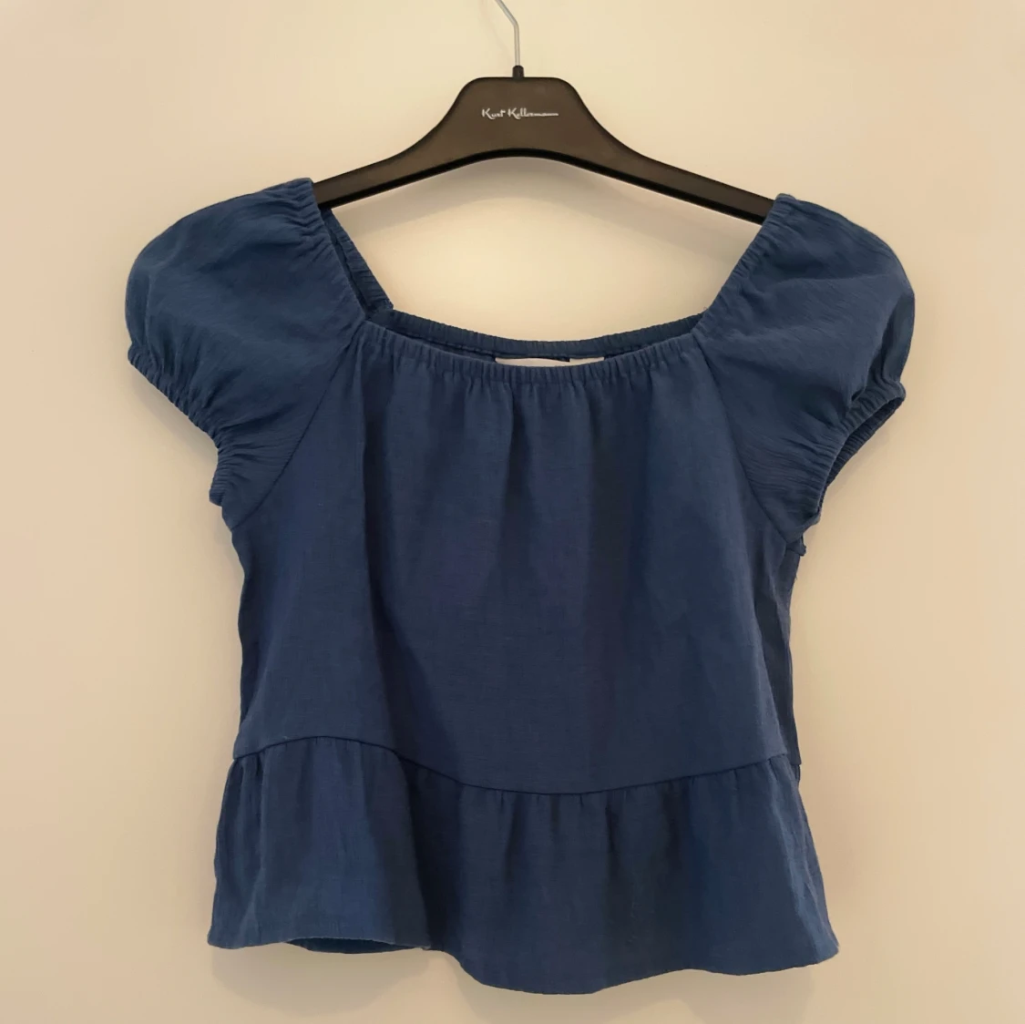 Säljer en gullig blå blus som är perfekt till sommaren. Den är i gott skick och i strl 152 men passar xs.💗💗