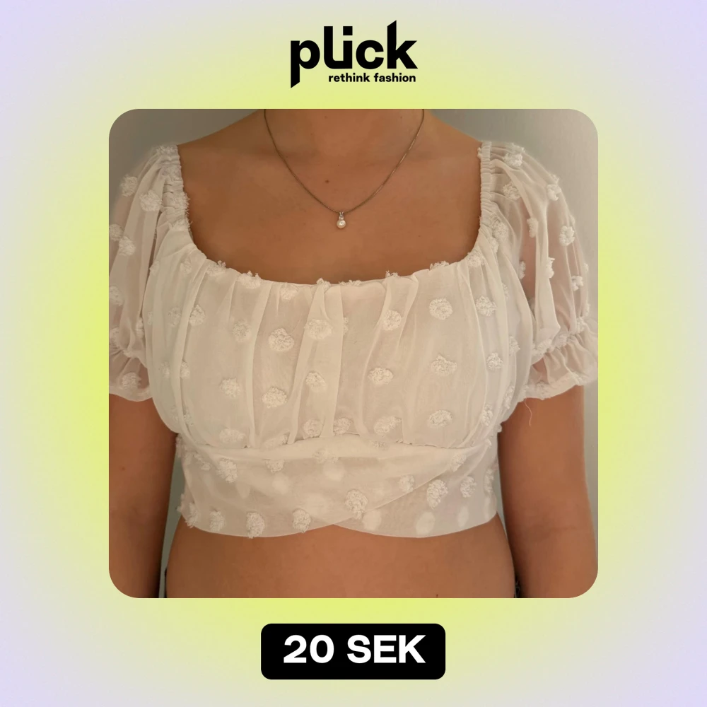 Söt blus med knytning i ryggen och vita små blommor på. Storlek S